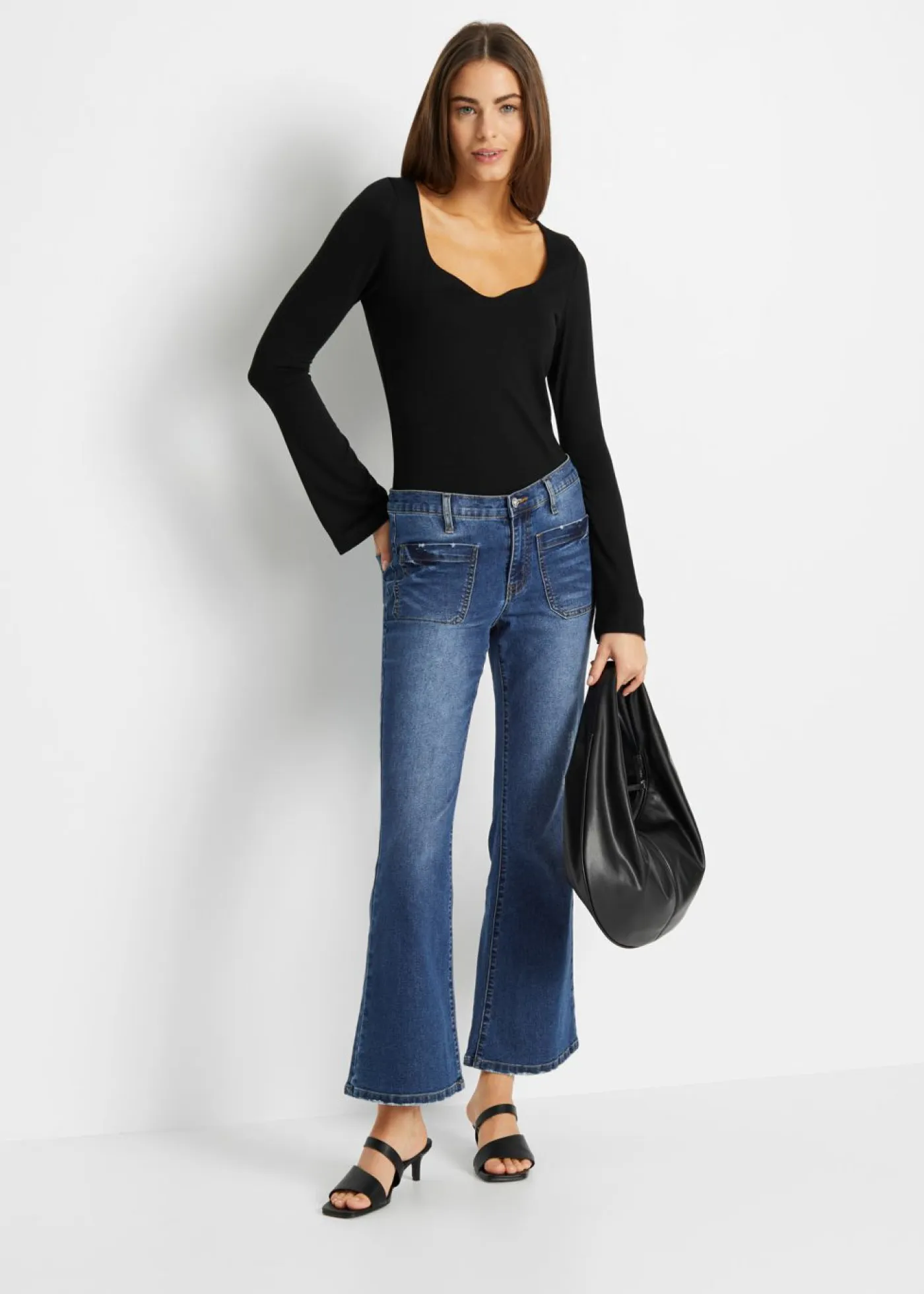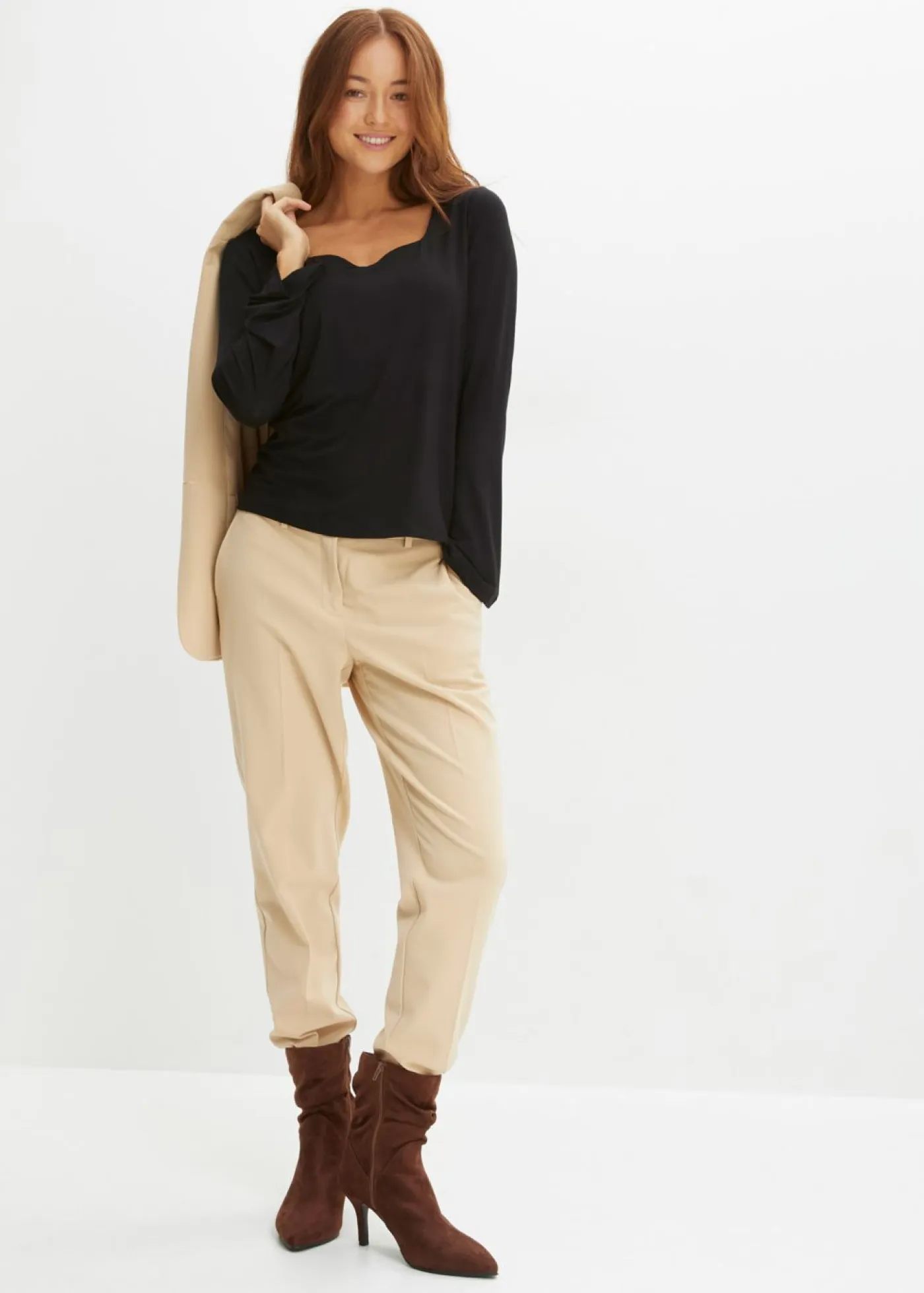 Moderna camiseta de manga larga con escote en forma de corazón.