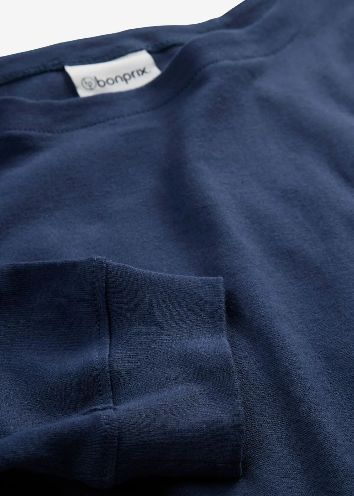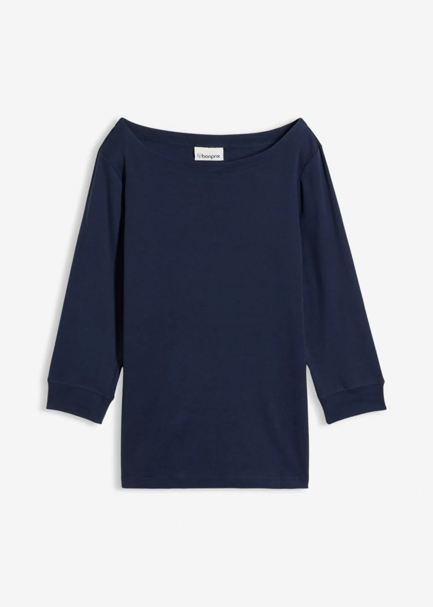 Cómoda camiseta elástica con mangas 374 y escote en U. Largo de aprox. 64 cm (talla 36/38) a aprox. 72 cm (talla 52/54). Se puede lavar a máquina.