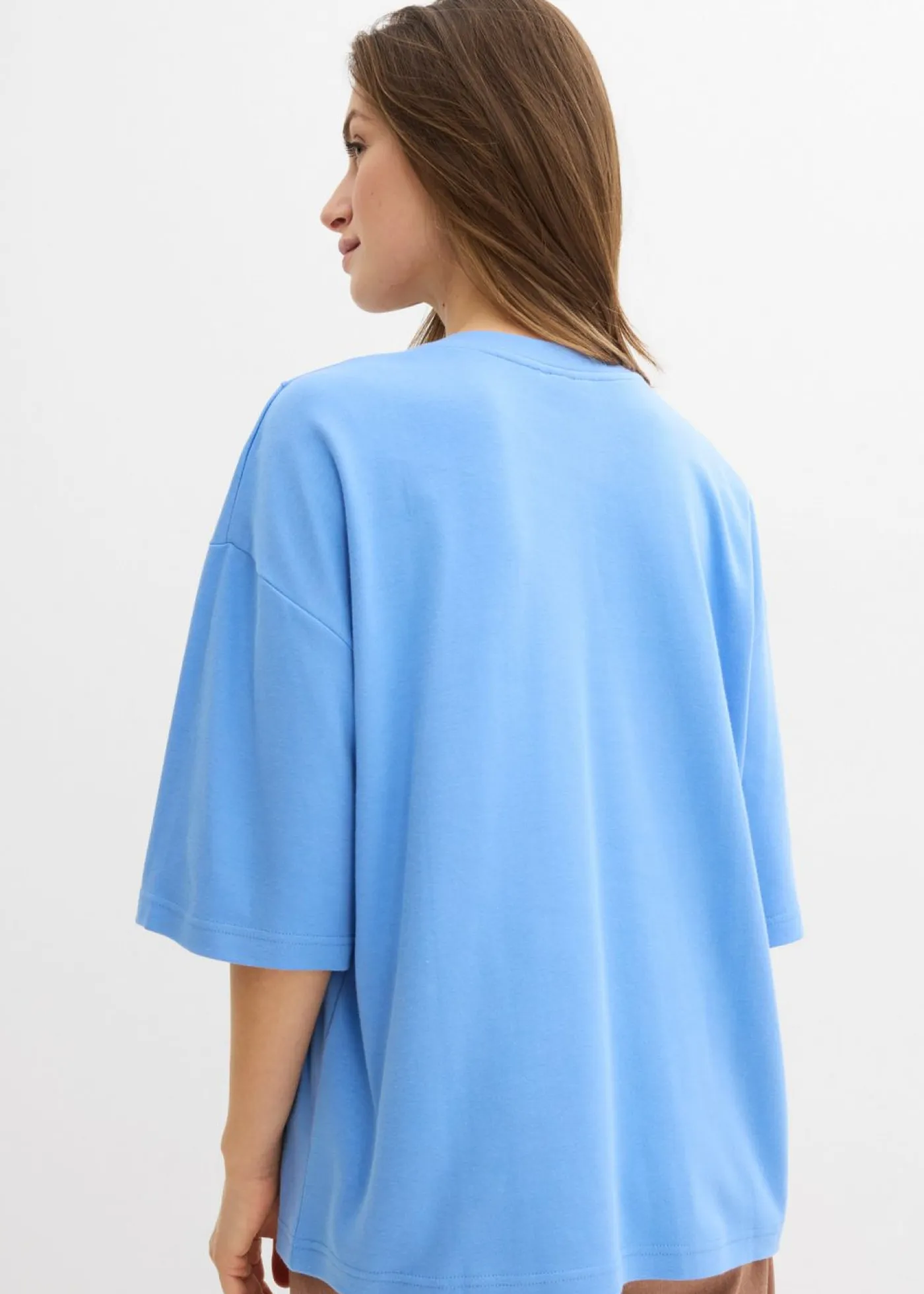 Camiseta holgada informal de algodón orgánico puro con costuras decorativas.