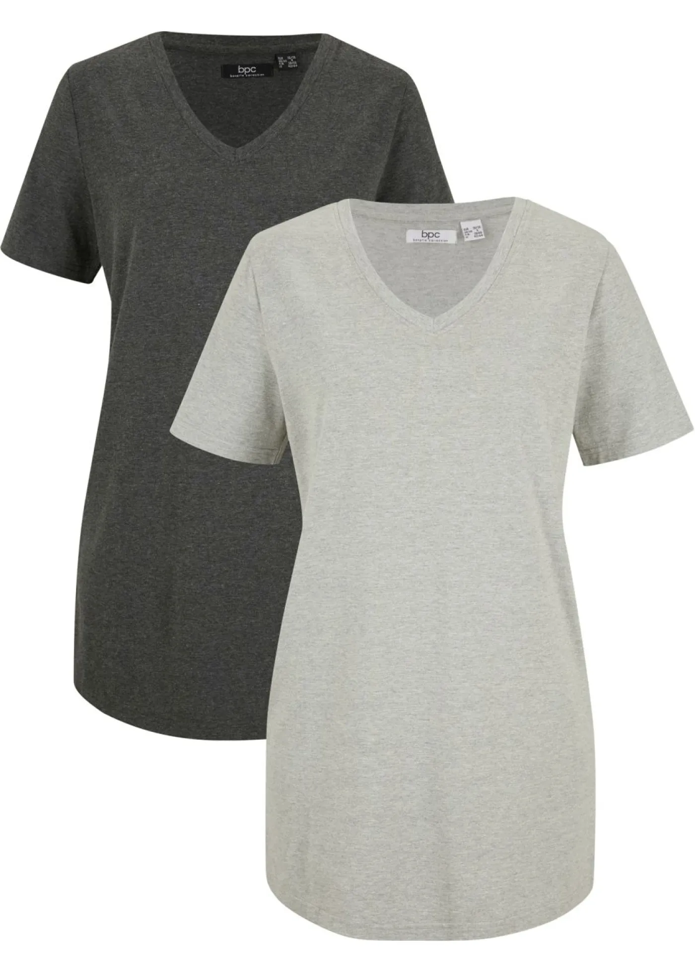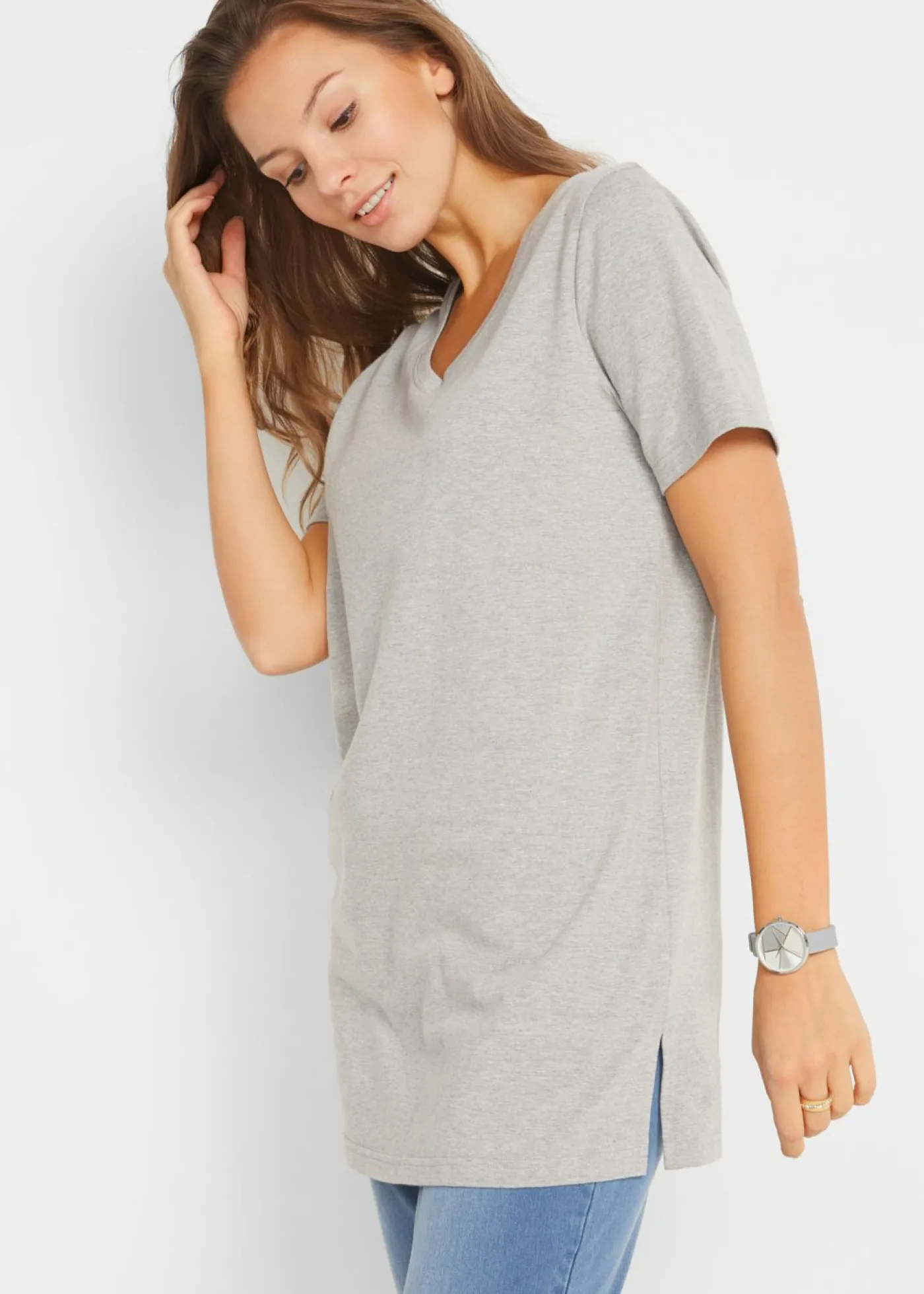 Cómoda camiseta larga básica con escote en V. Largo de aprox. 76 cm (talla 36/38) a aprox. 82 cm (talla 56/58). Se puede lavar a máquina.