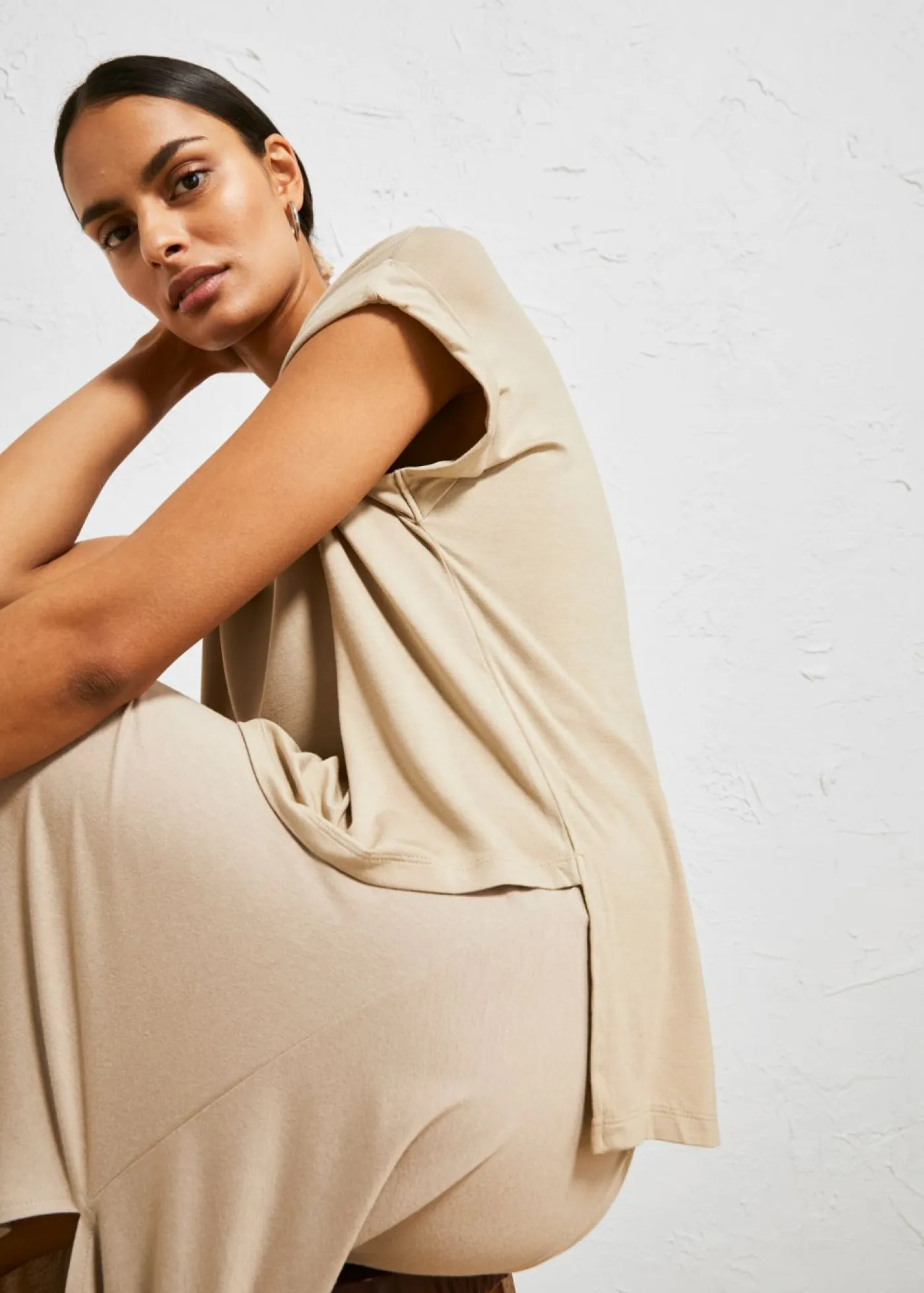 Camiseta holgada informal de viscosa fluida.
