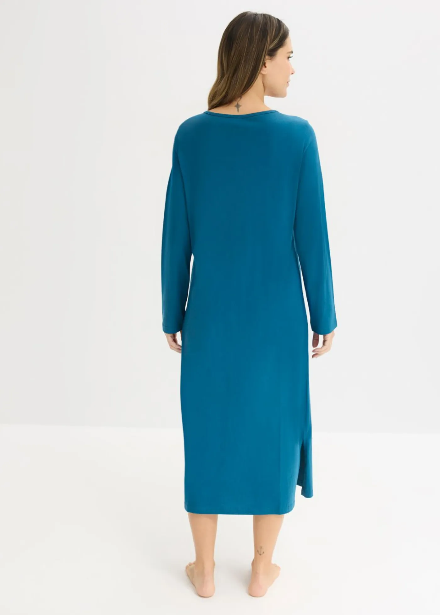 Cómodo camisón largo con mangas largas, aberturas laterales y un bonito estampado de flores.