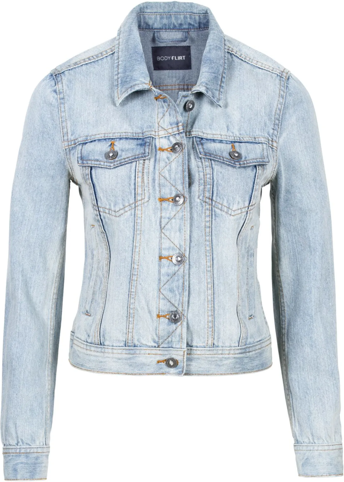 Elegante cazadora vaquera con bolsillos en el pecho y laterales. Esta cazadora vaquera informal siempre queda bien, por lo que es una prenda imprescindible. Largo de aprox. 50 cm en talla 38.