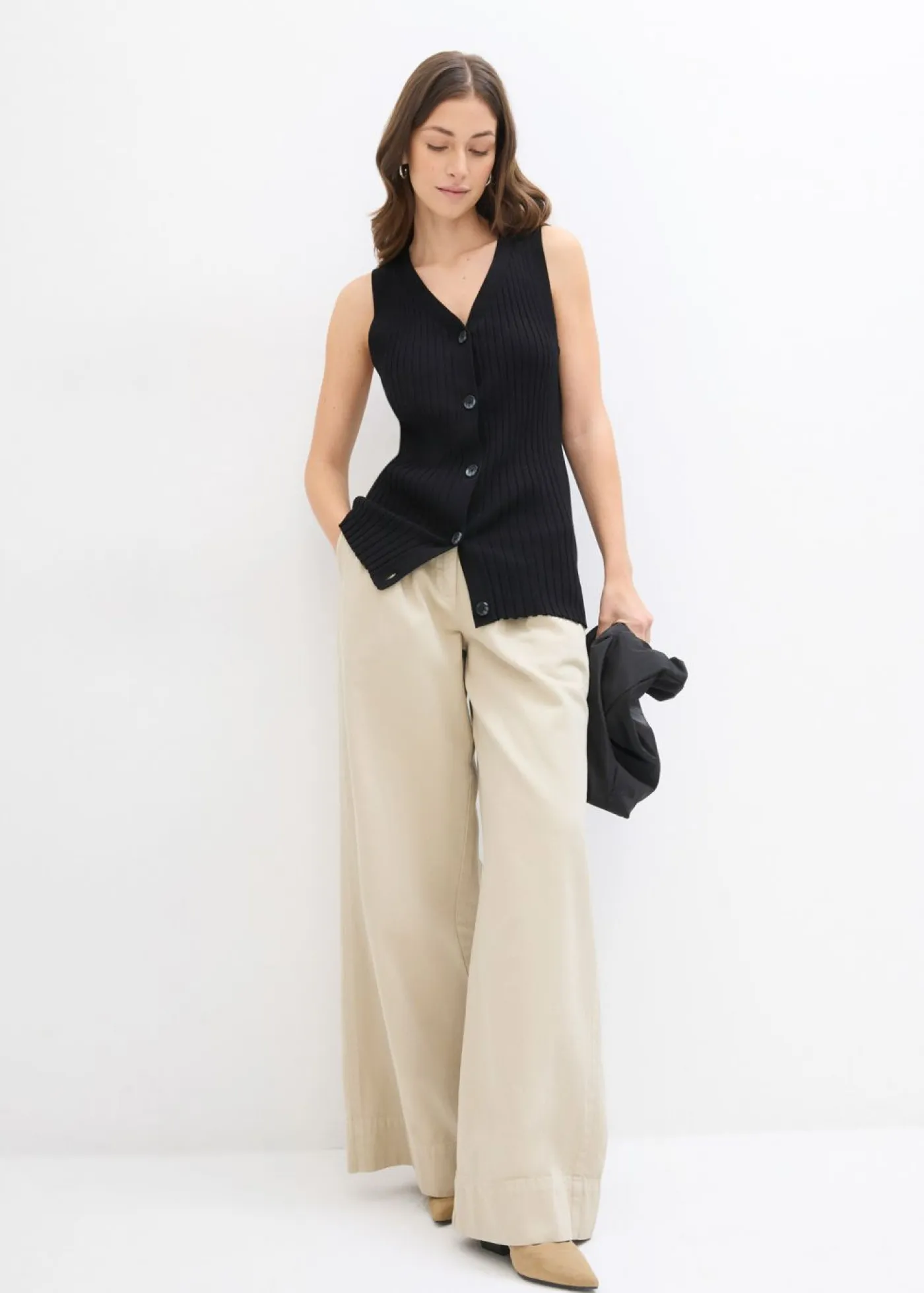 Chaleco largo de punto de canalé.