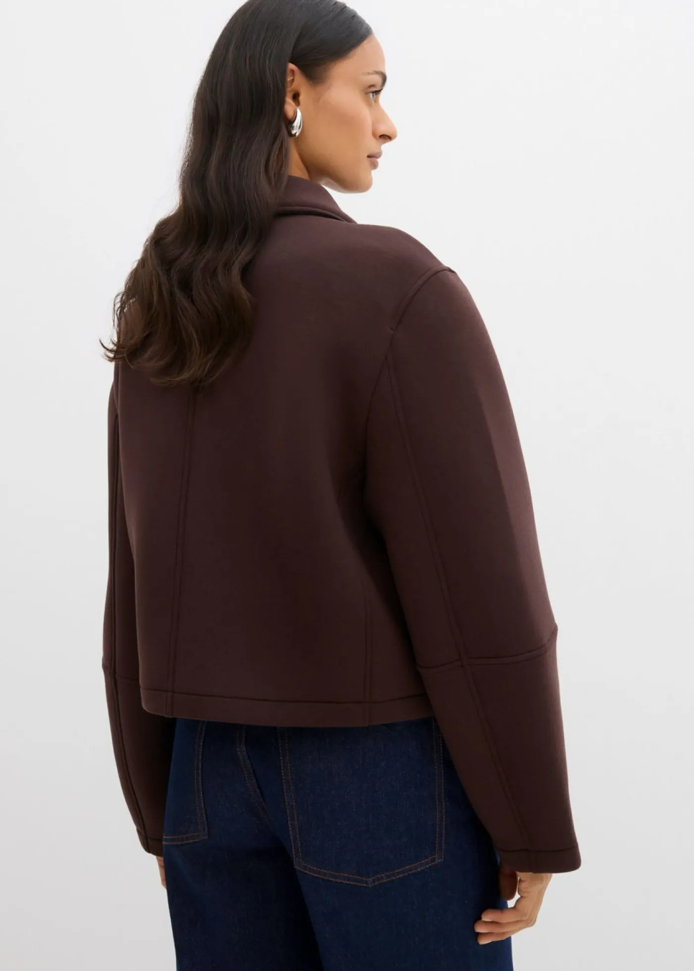 Chaqueta corta con cuello de camisa, bolsillos y costuras acolchadas a juego.