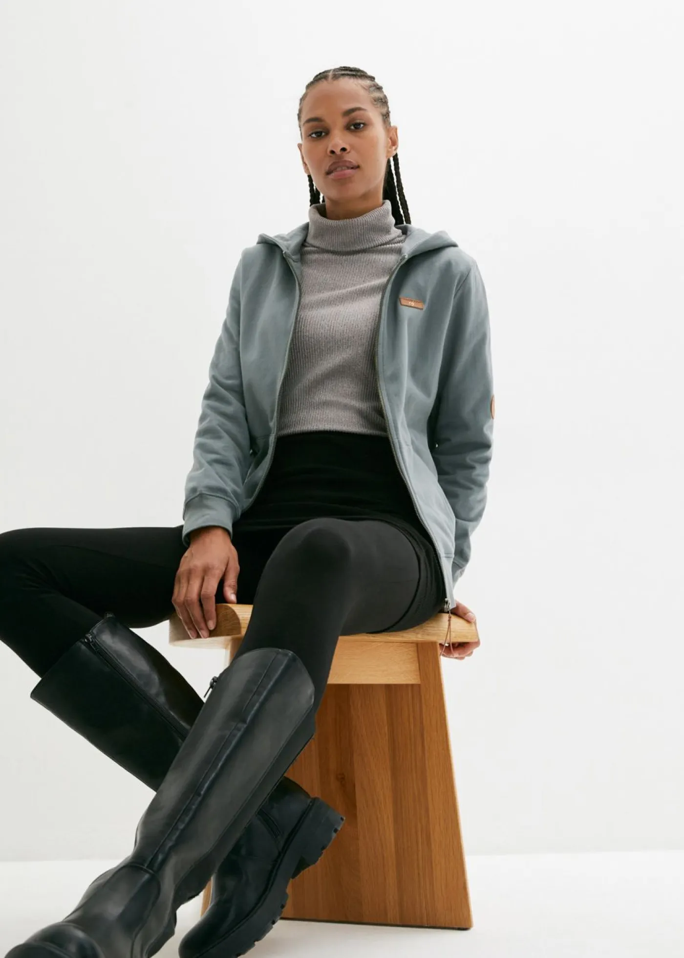 Chaqueta de chándal con bolsillo tipo canguro y detalles de piel sintética. Largo de aprox. 66 cm (talla 36/38) a aprox. 72 cm (talla 52/54). Se puede lavar a máquina.