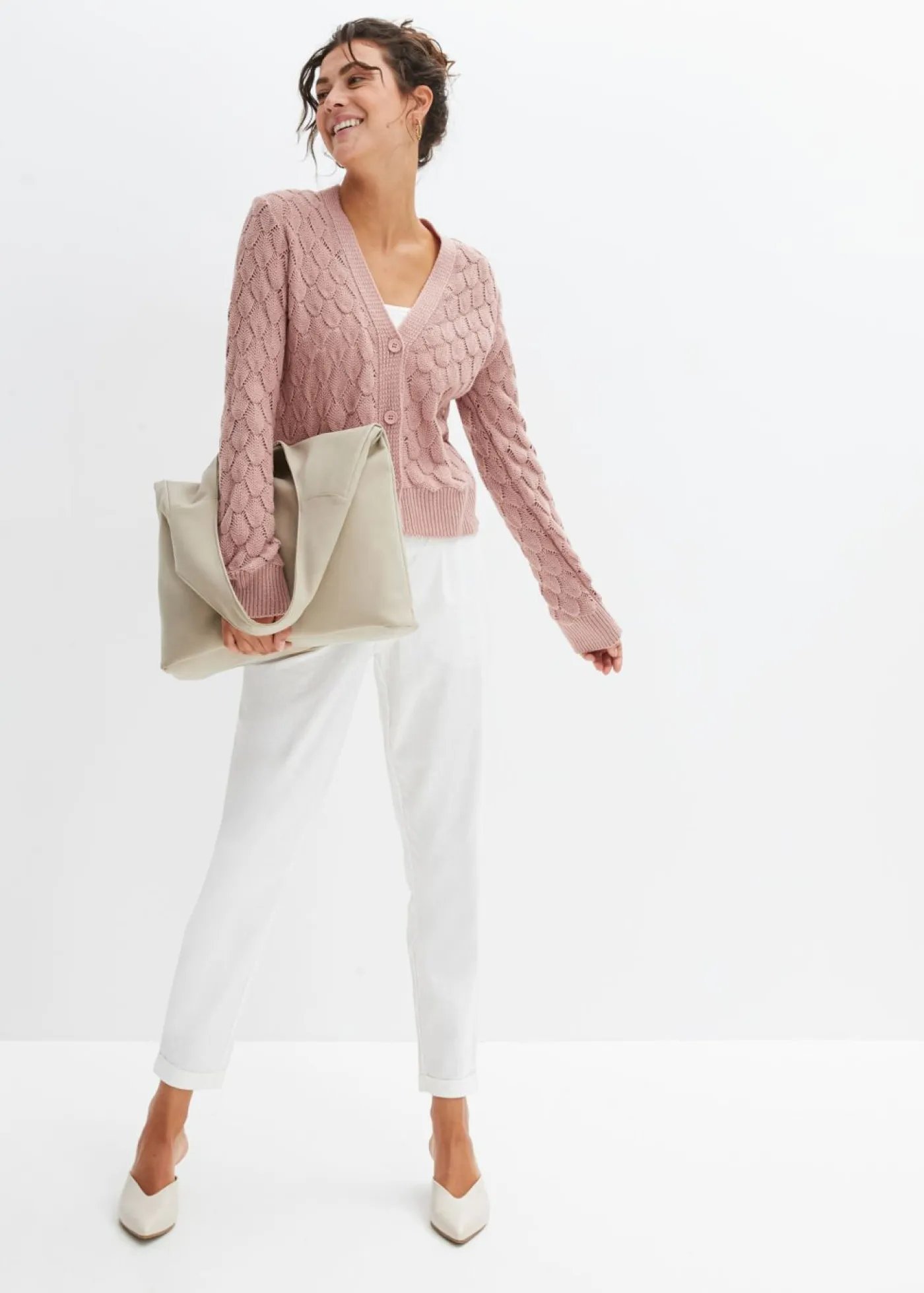 Chaqueta de punto ajour, Largo regular