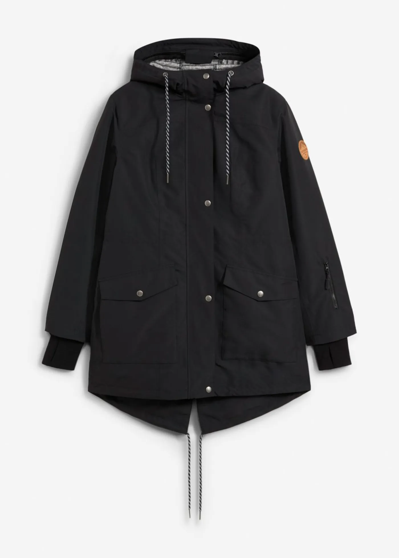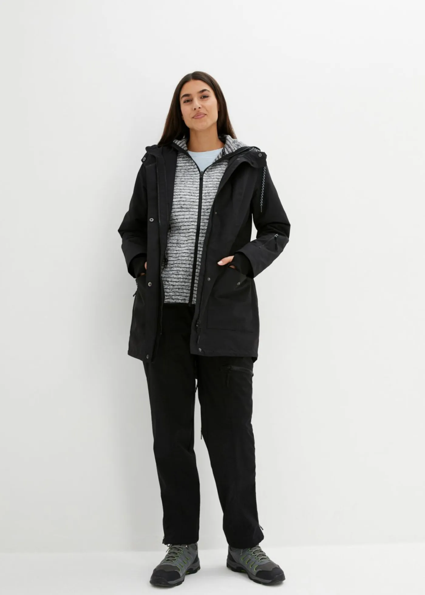 Parker impermeable 3 en 1 con prácticos bolsillos. Chaqueta larga 3 en 1 de poliéster reciclado con capucha. Se puede regular el bajo y los puños con una correa y un botón. La chaqueta exterior tiene bolsillos de parche. La chaqueta interior tiene bolsillos tipo canguro y capucha. Largo de aprox. 90 cm en talla 42. Se puede lavar a máquina.