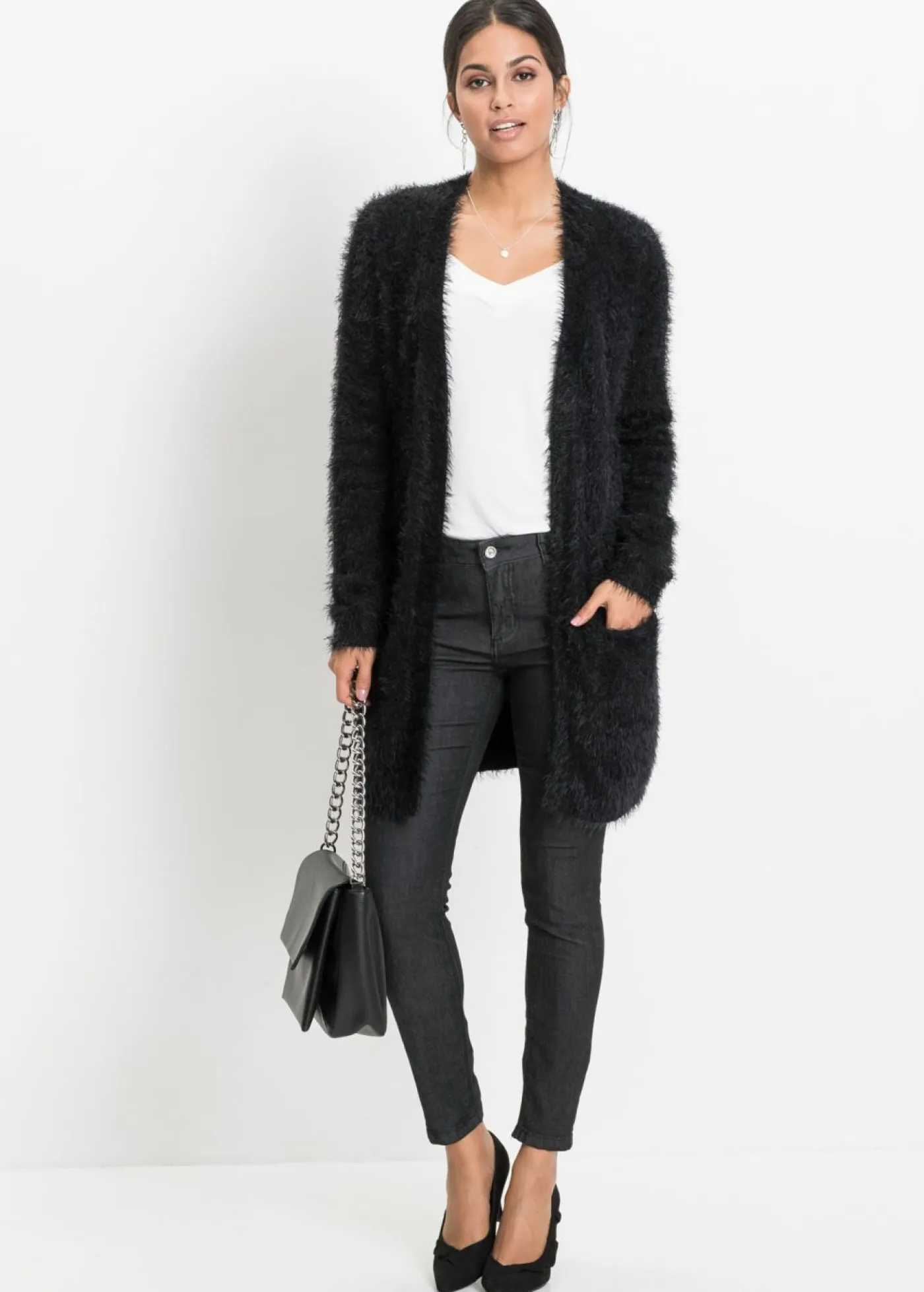 Chaqueta mullida de punto con bolsillos. Déjate arropar por este suave cárdigan cuando hace frío. Se lleva abierto y tiene bolsillos laterales. Lavable a máquina. Largo aproximado 86 cm.