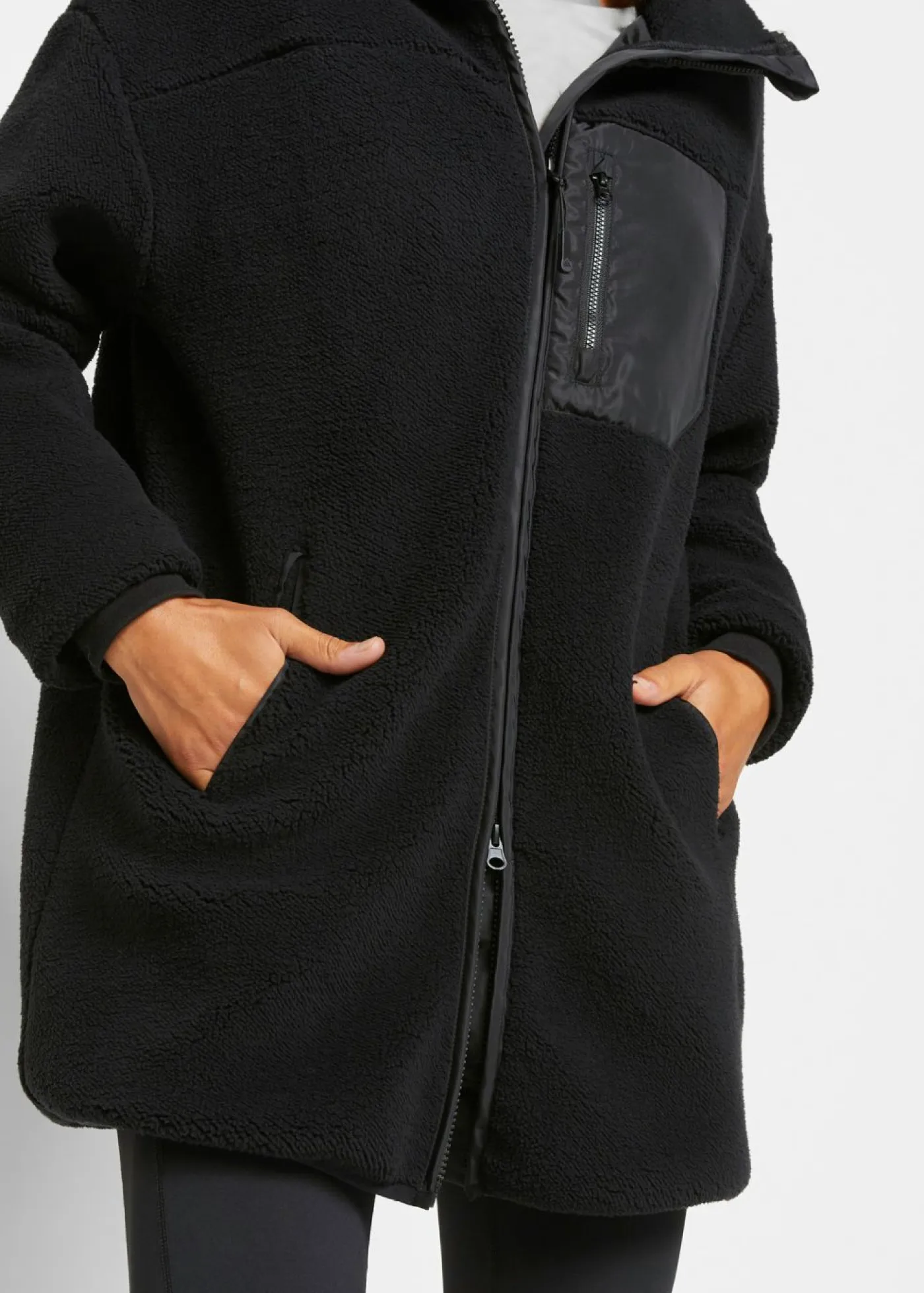 Chaqueta polar con bolsillo delantero con cremallera. Largo de aprox. 82 cm en talla 40/42. Se puede lavar a máquina.