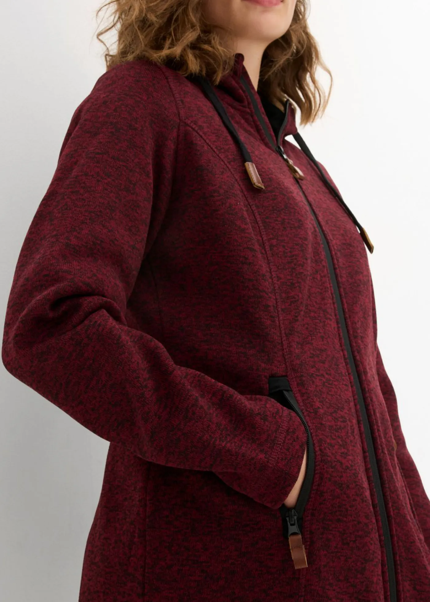 Cómoda chaqueta polar con capucha y bolsillos con cierre. Cremallera de doble sentido con protección para la barbilla, bolsillos con cremallera. Largo de aprox. 74 cm en talla 40/42. Se puede lavar a máquina.