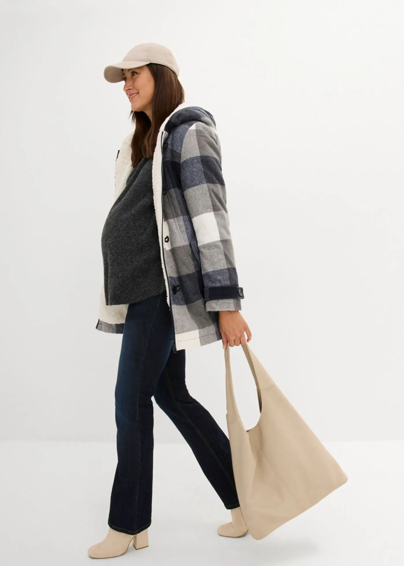 Suave chaqueta premamá de lana para todo el embarazo y después. El inserto para bebé solo sirve para protegerlo del viento y las inclemencias del tiempo, no para porteo. La chaqueta premamá tiene dos cremalleras en los laterales para que la barriga goce de espacio suficiente.