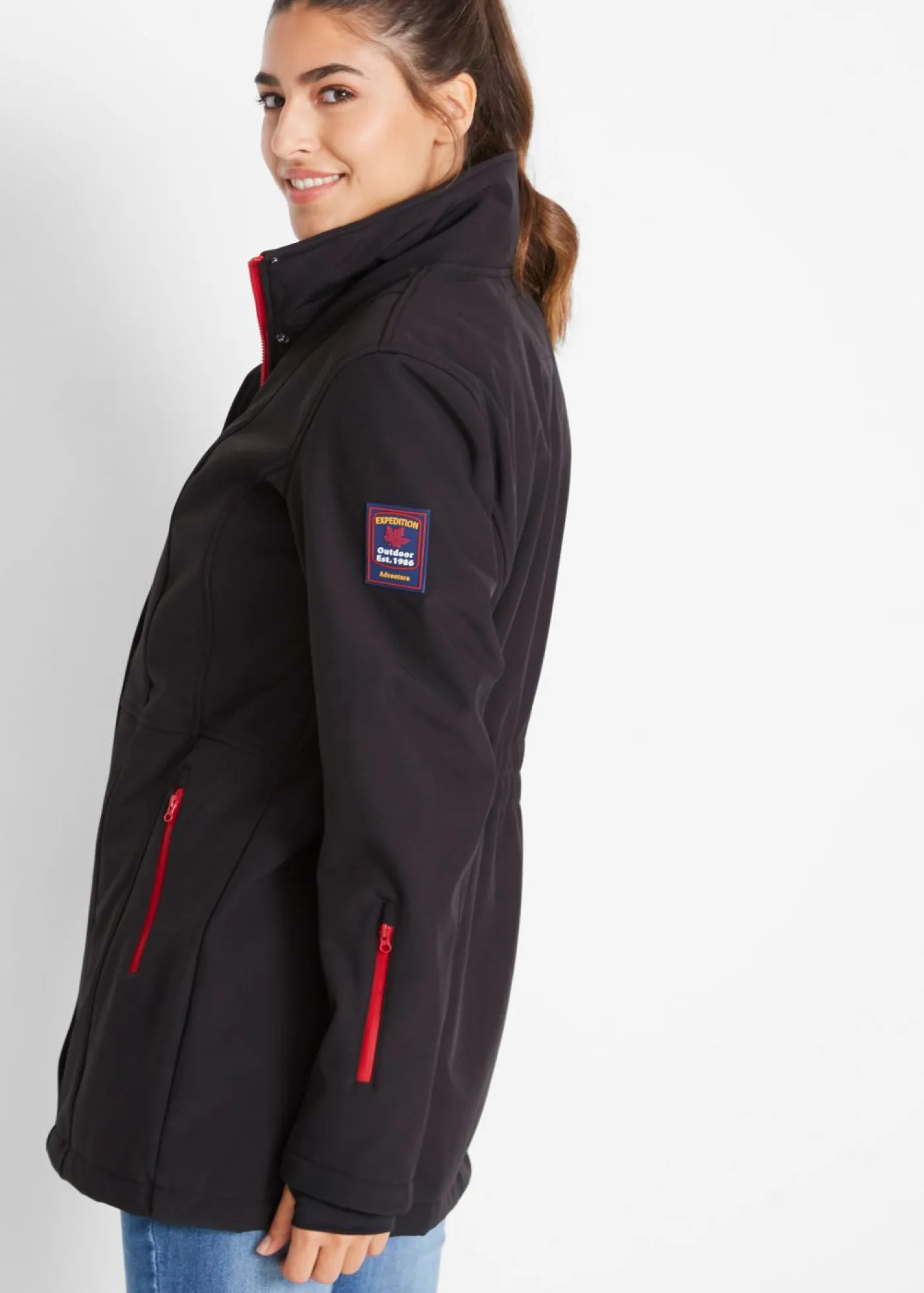 Chaqueta softshell elástica con diseño largo y tejido repelente al agua
