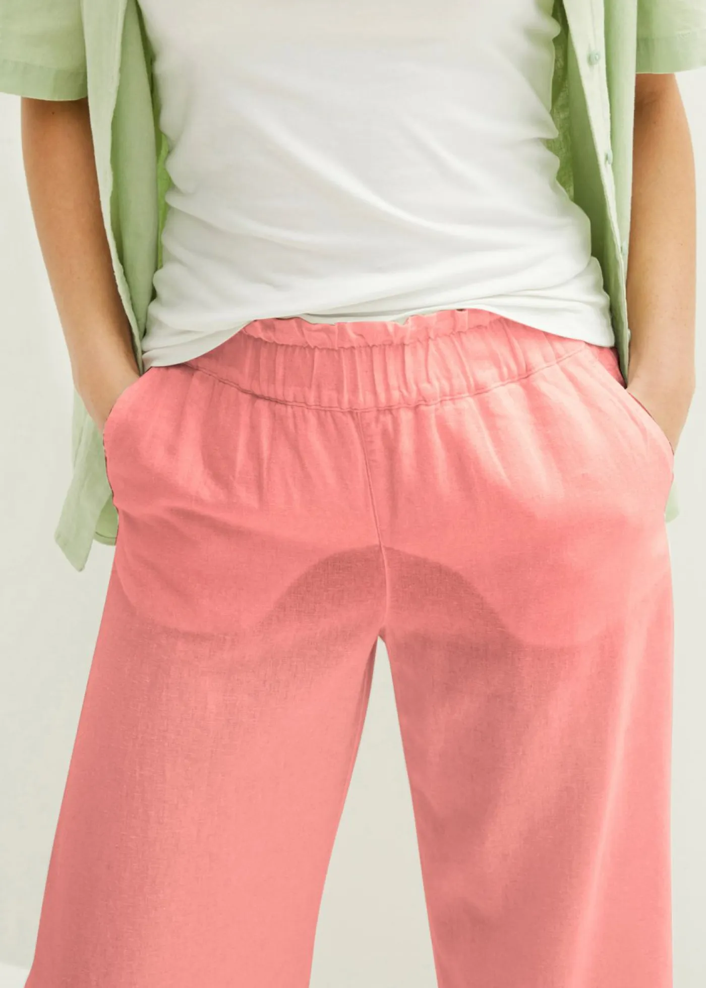 Cómodo culotte de lino con cintura elástica. Largo interior de la pierna de aprox. 58,5 cm en talla 42. Se puede lavar a máquina.