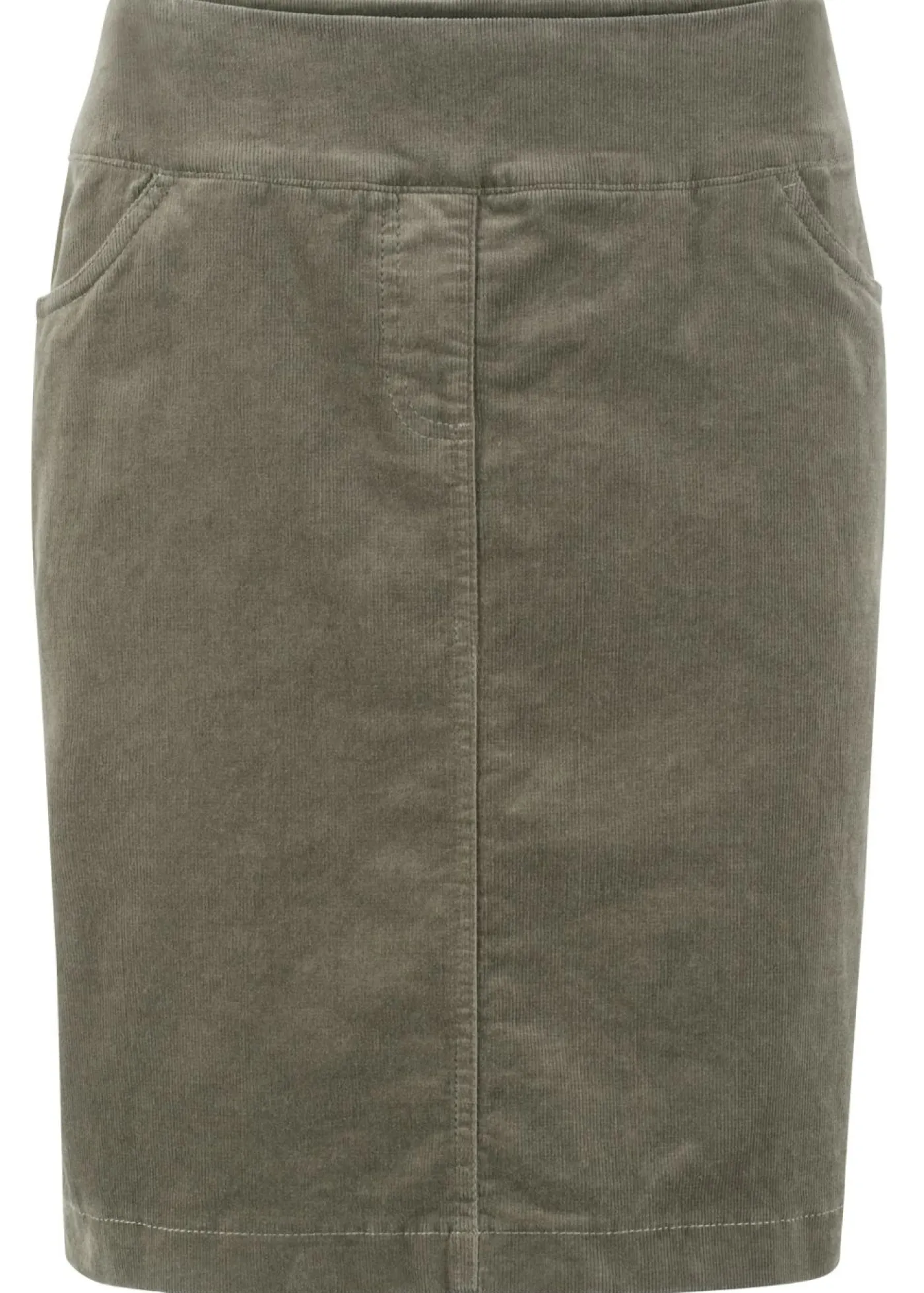 Falda de pana elástica, con cintura elástica y por la rodilla. Largo de aprox. 50 cm (talla 38) a aprox. 58 cm (talla 56). Se puede lavar a máquina.
