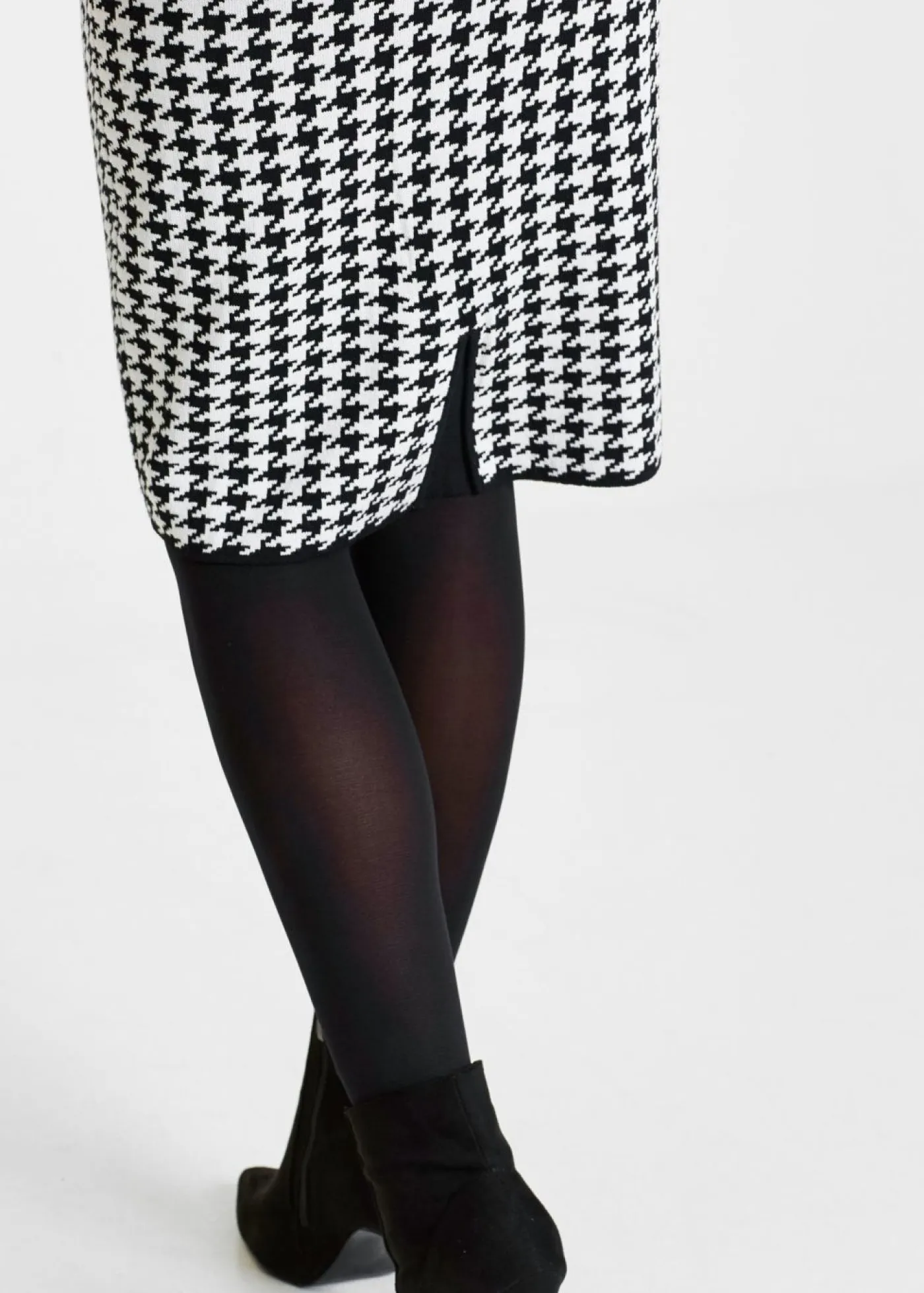 Falda clásica de punto con abertura para caminar. Estampado de pata de gallo y pequeña ranura para caminar. Largo de aprox. 64 cm en talla 36/38 a aprox. 70 cm en talla 56/58. Se puede lavar a máquina.