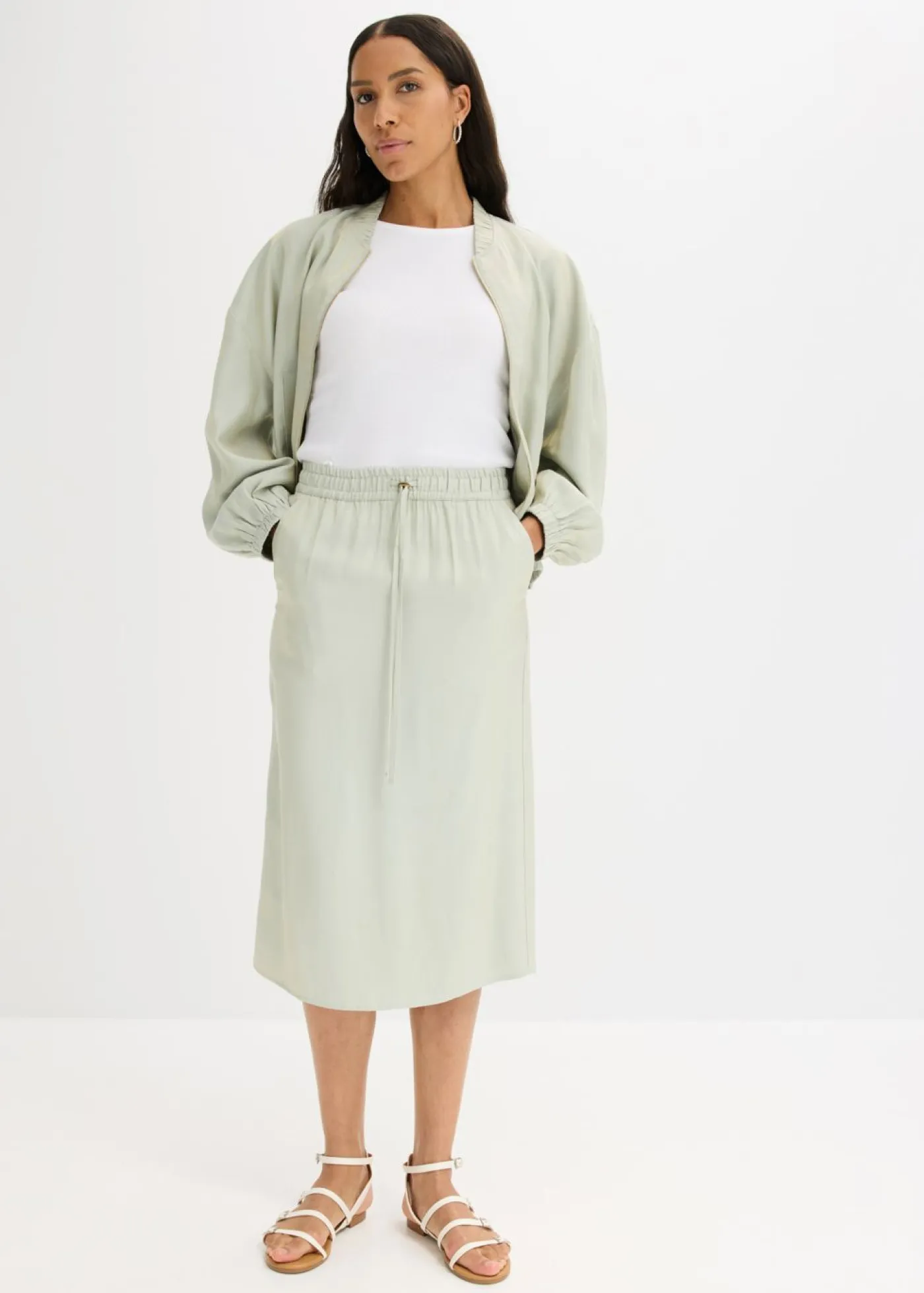 Falda midi de satén brillante