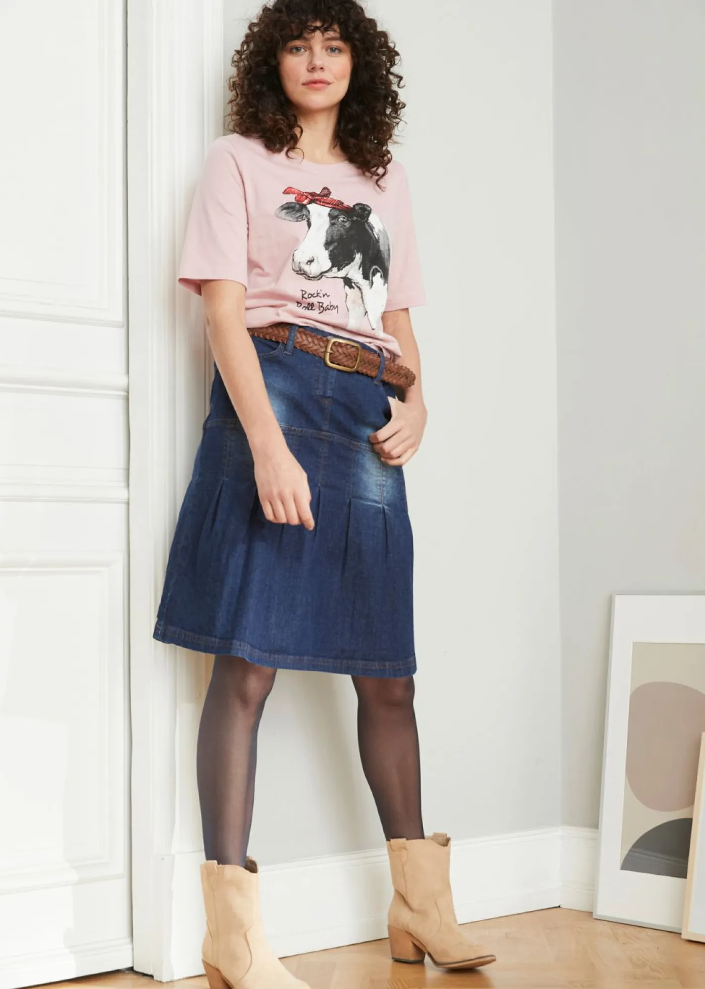 Falda vaquera con ribetes y cintura cómoda, corte en A