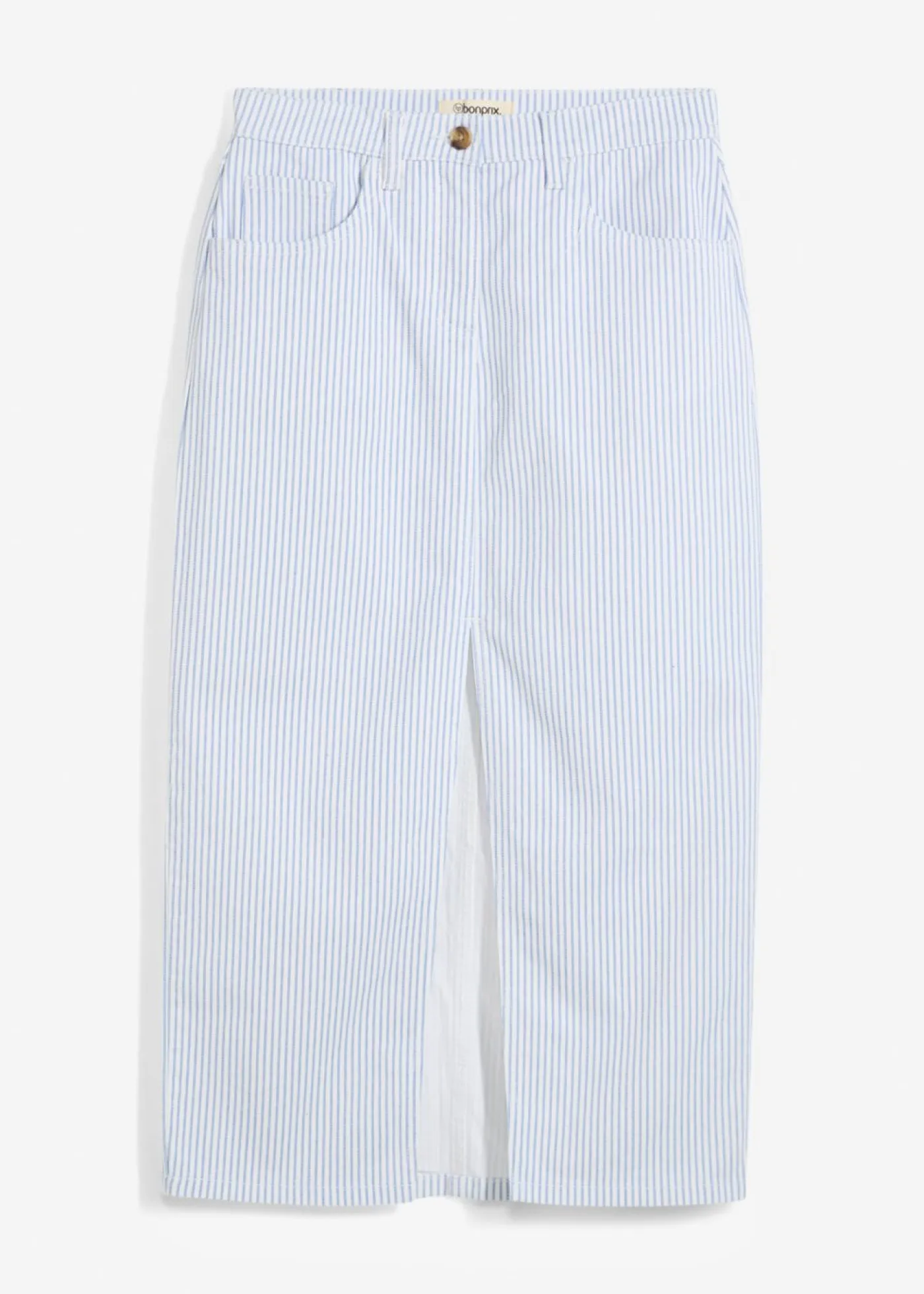 Falda vaquera midi con rayas. Largo de aprox. 82 cm en talla 42. Se puede lavar a máquina.