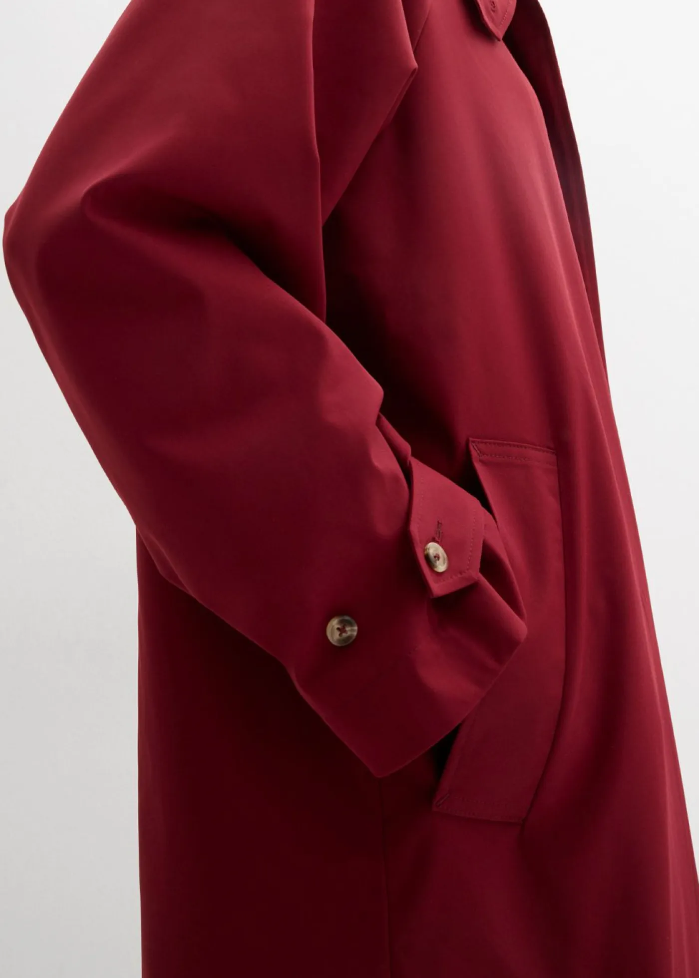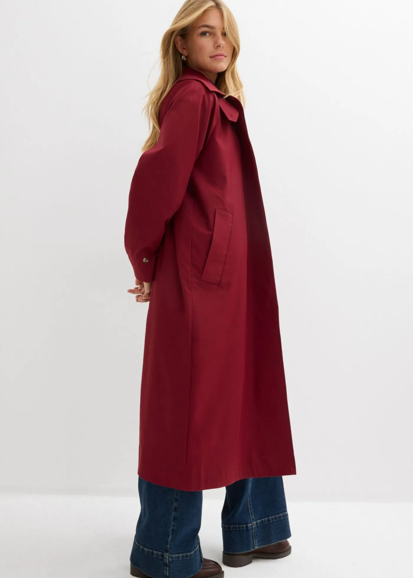 Gabardina ancha con silueta recta, cuello ancho y puños ajustables.