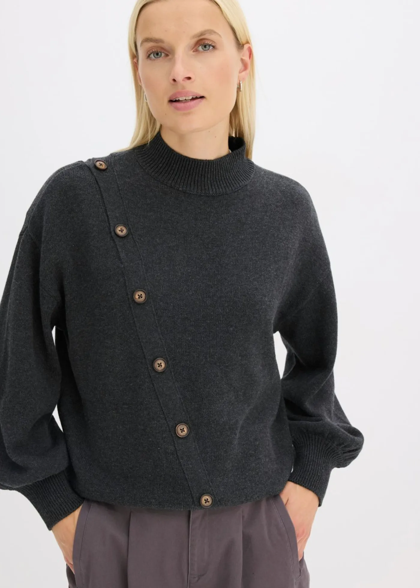 Jersey con corte ligeramente oversize y botones en diagonal, que permiten abrir el hombro.
