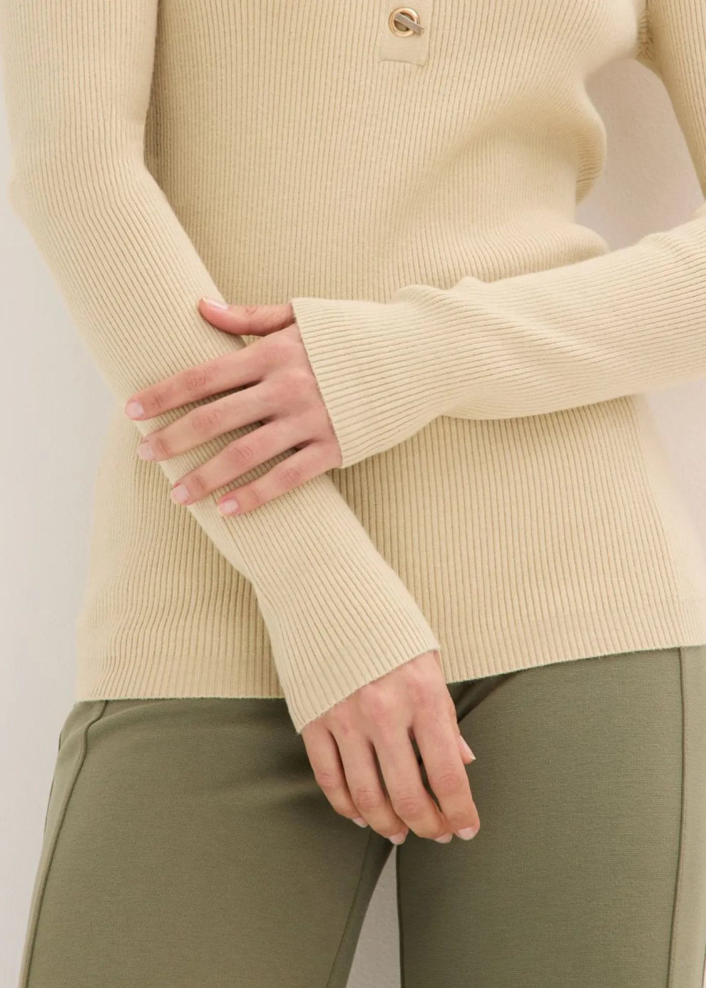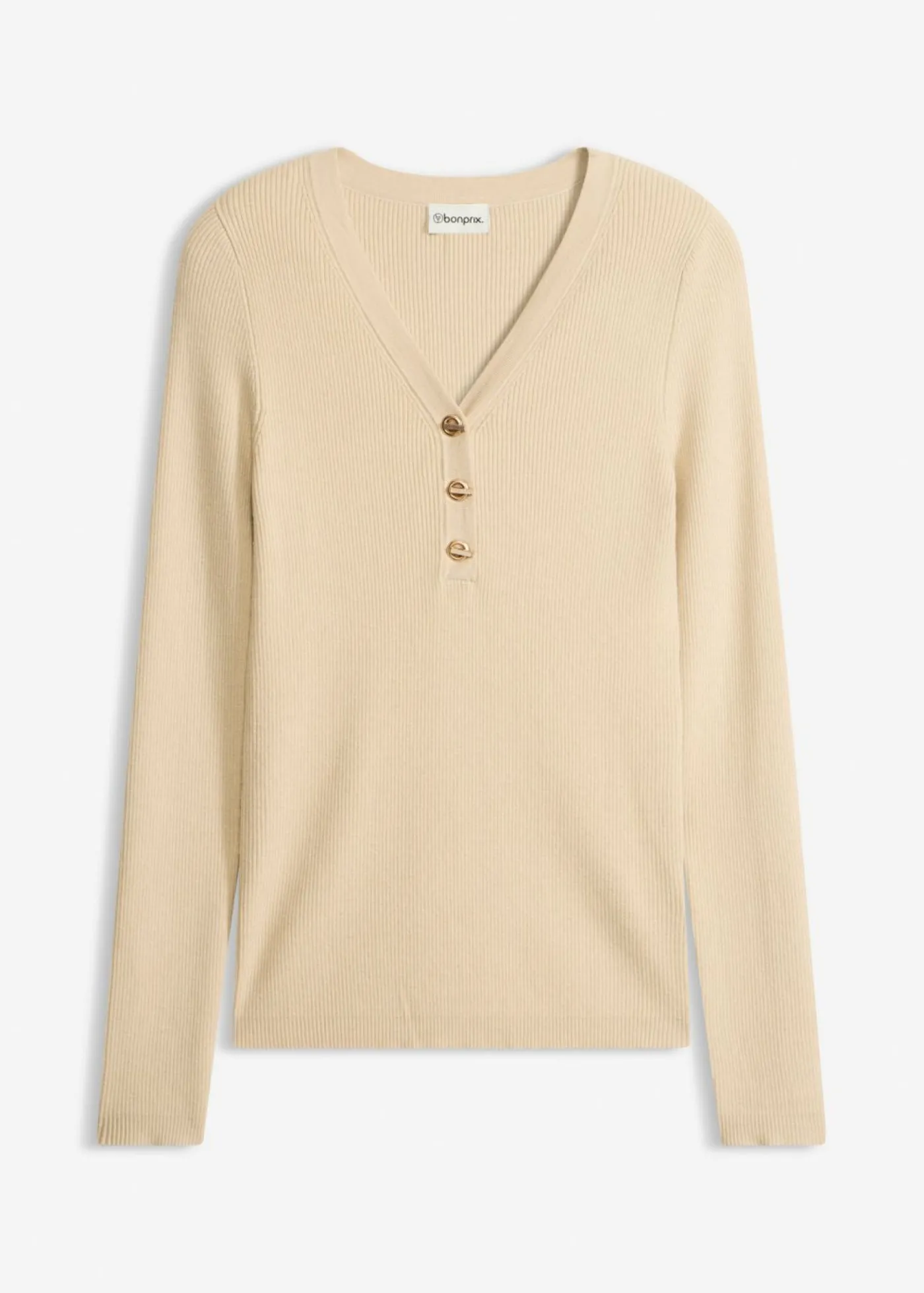 Elegante jersey de canalé con botones divertidos.