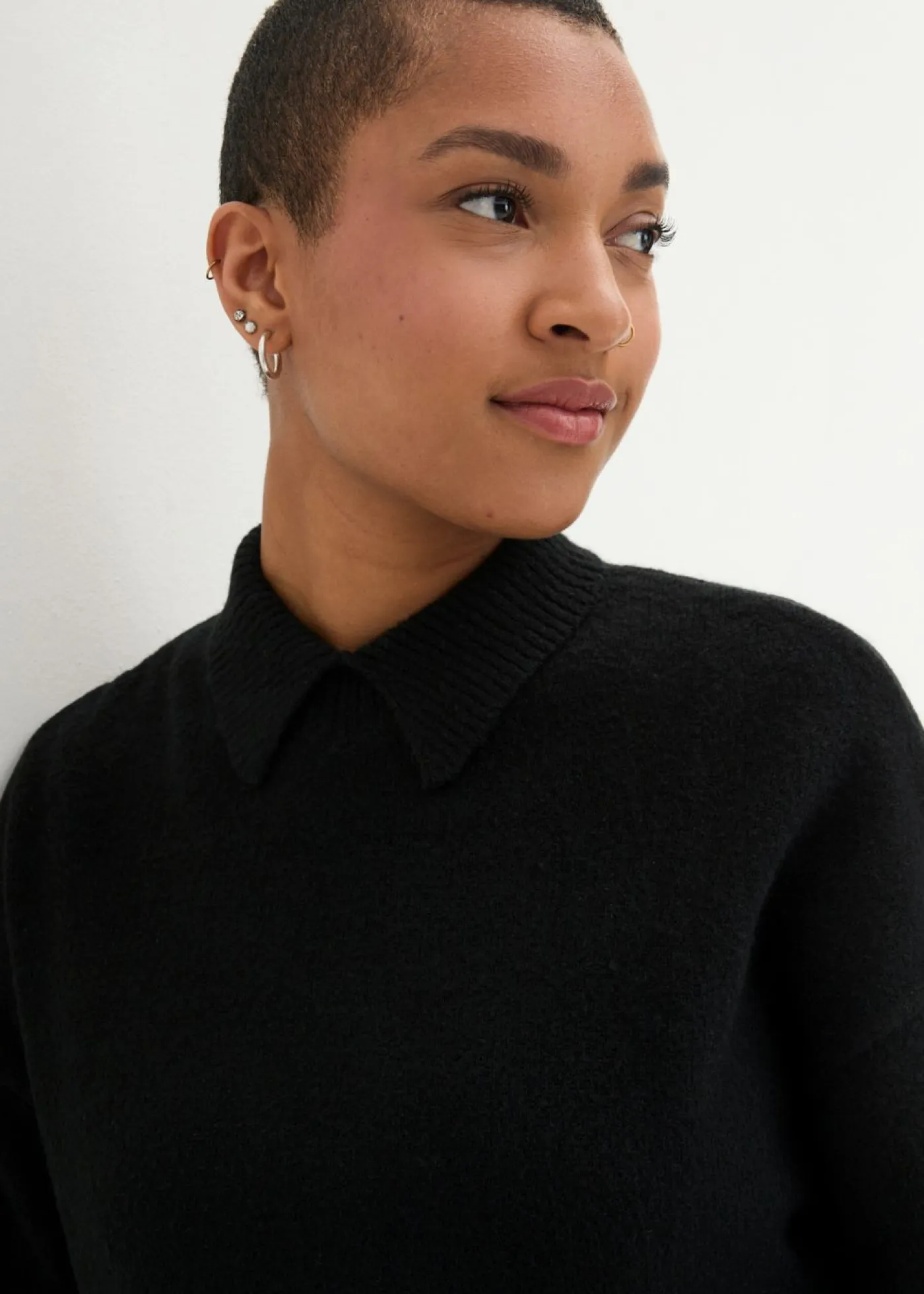 Jersey holgado con cuello alto para brindar más comodidad gracias a las aberturas laterales.