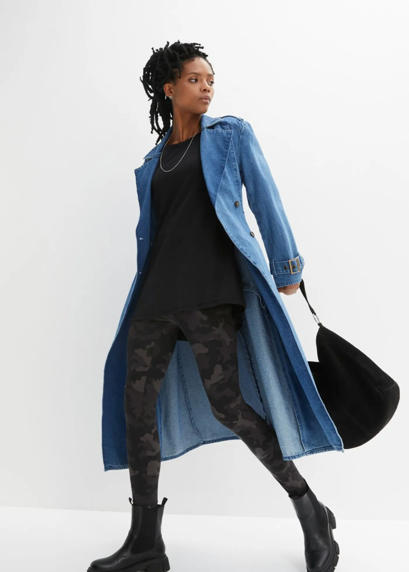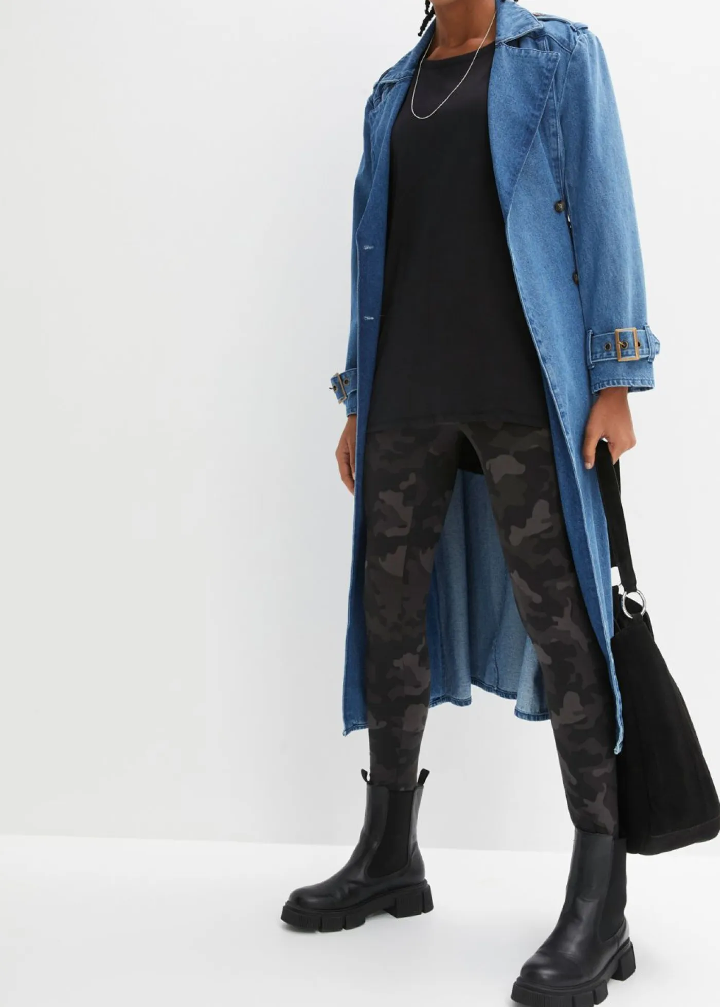 Leggings versátiles en paquete doble. Uno liso y otro estampado, ambos con goma. Largo interior de la pierna de aprox. 70,5 cm en talla 40/42.