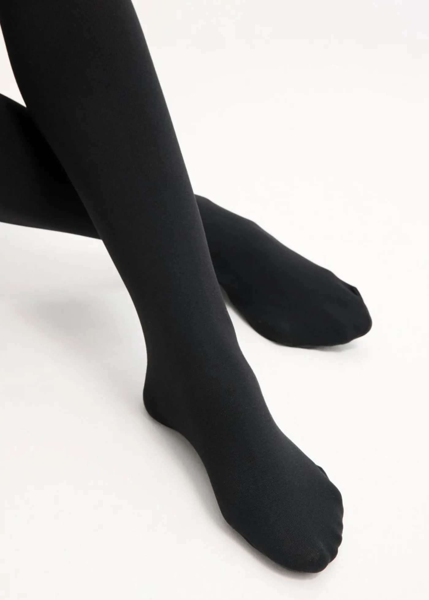 Medias térmicas funcionales para embarazadas con cintura ajustable. Las medias térmicas son opacas y cuentan con un interior cálido de suave tejido polar. Como el elástico es ajustable en anchura, se puede adaptar al crecimiento del vientre durante el embarazo.