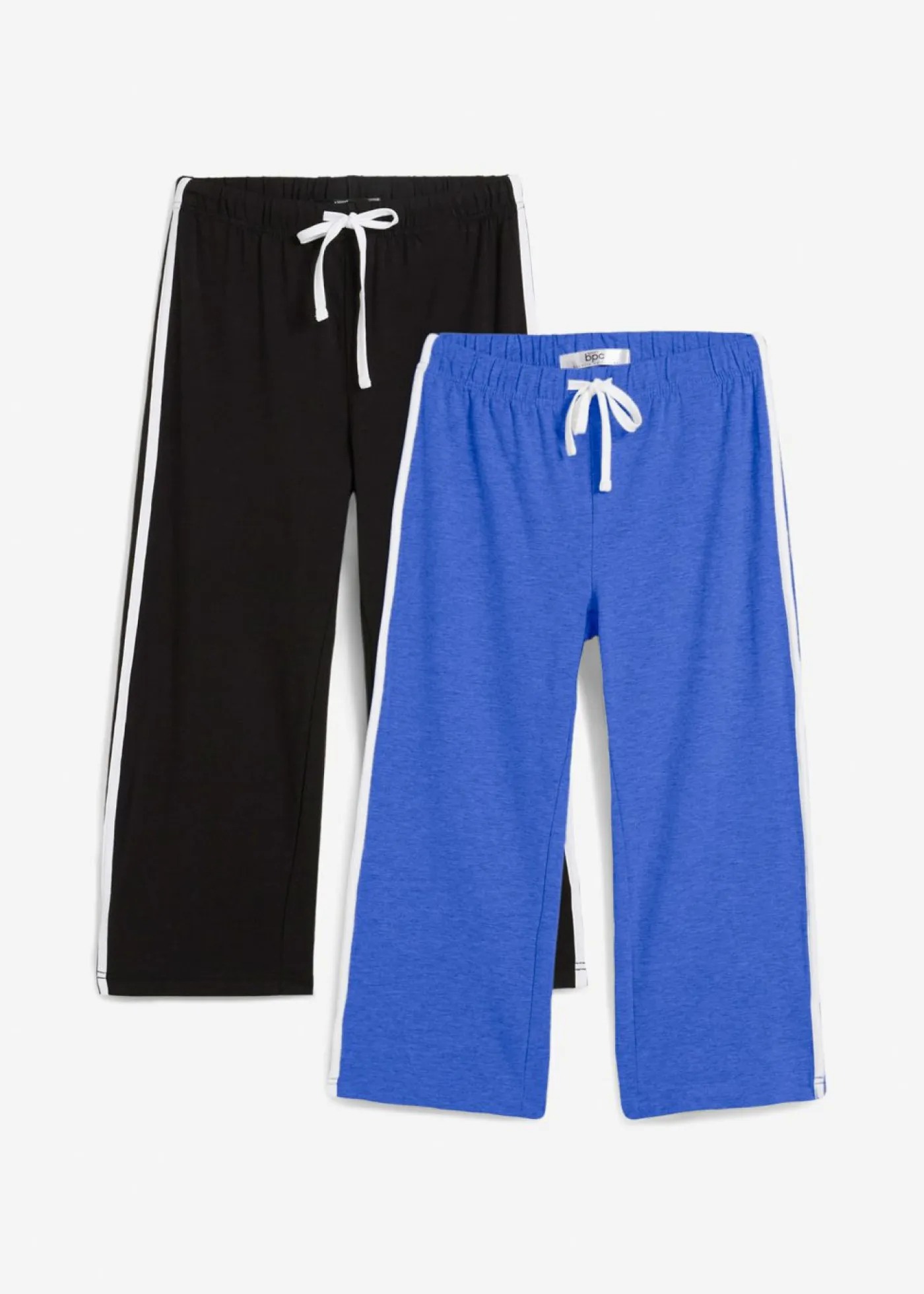 Pantalón capri deportivo con algodón y corte pitillo (2 unidades). Pack de 2 pantalones de deporte capri con cintura elástica con cordón, ribetes al contraste en los laterales y aberturas en el bajo. Largo interior pierna aprox. 49 cm.