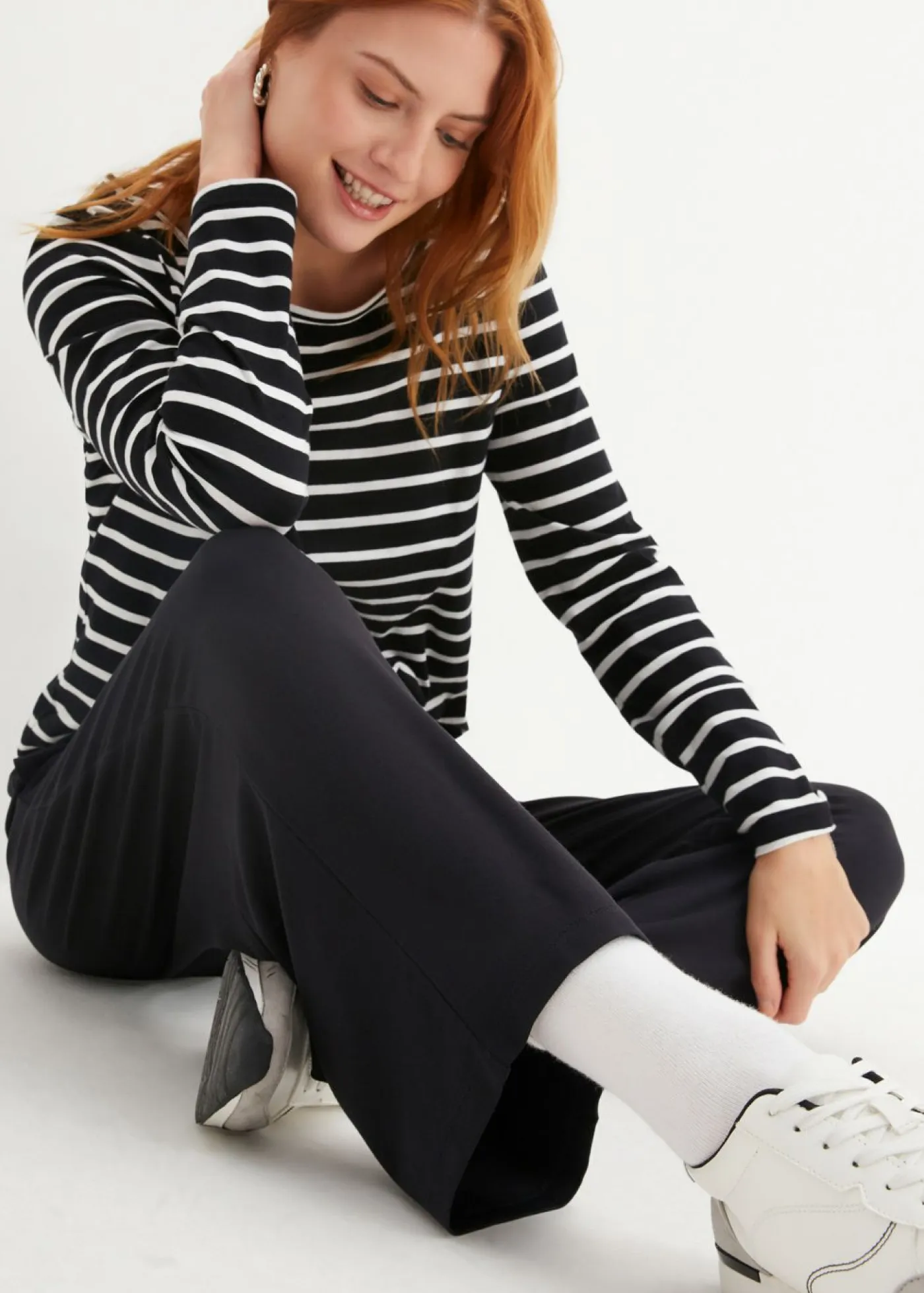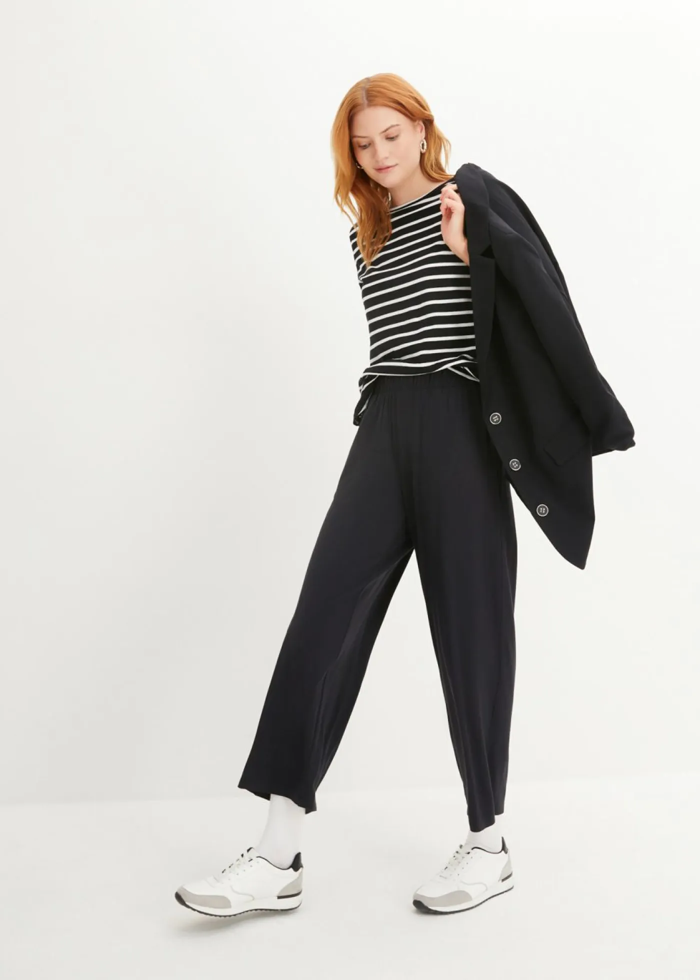 Pantalón ancho de largo 7/8 con cinturilla cómoda y bolsillos (2 unidades). Largo interior de la pierna de aprox. 59,5 cm en talla 40/42. Se puede lavar a máquina.