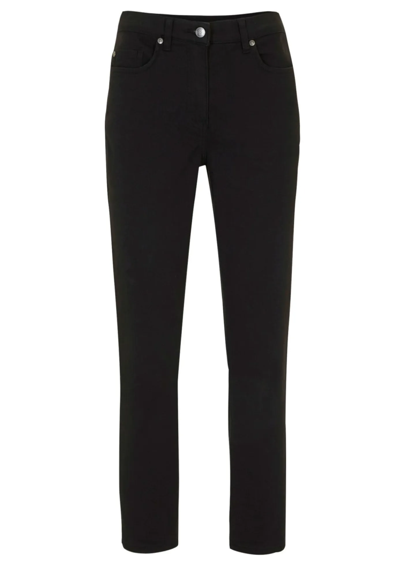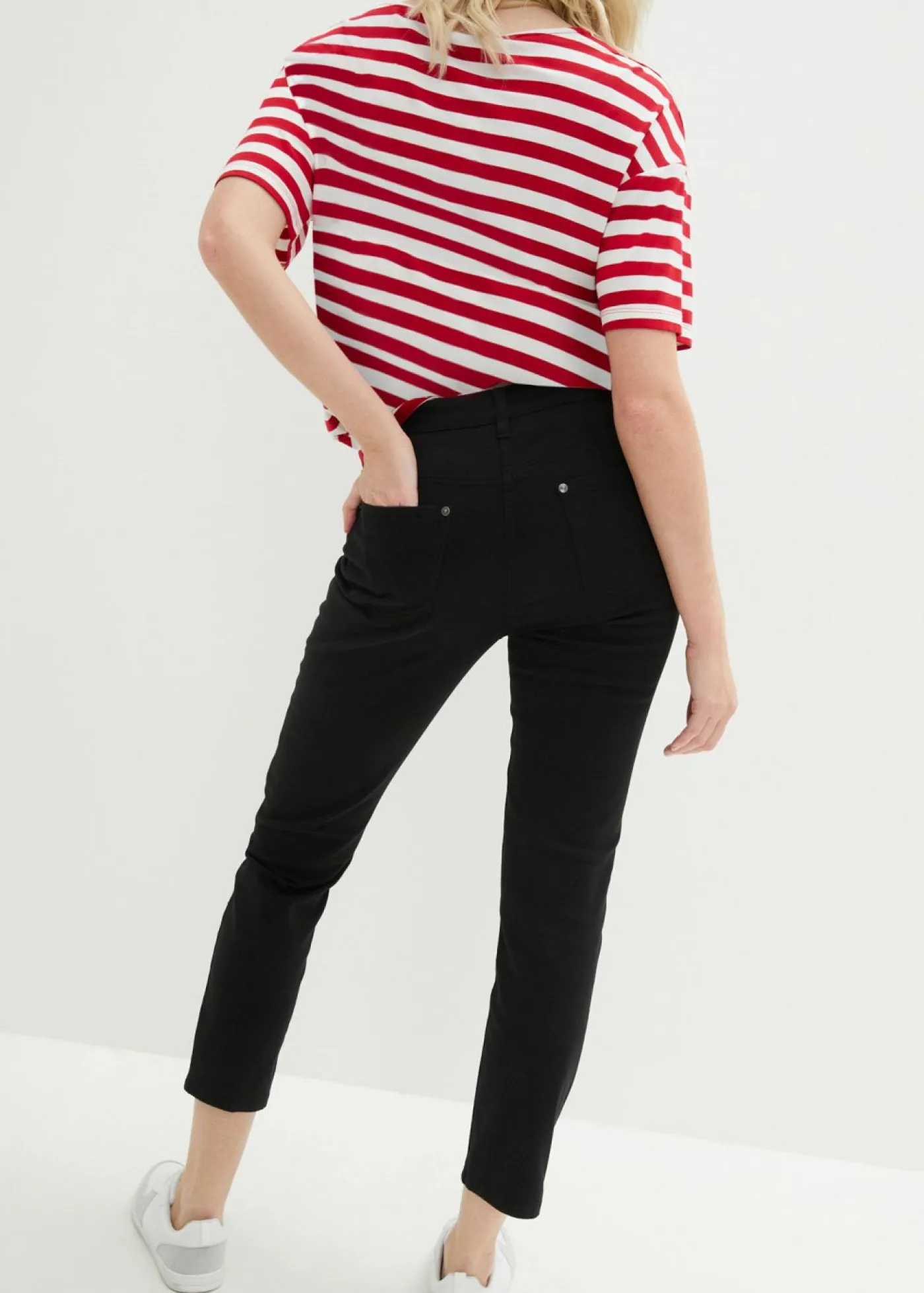 Pantalón elástico acortado con estilo de 5 bolsillos y pierna slim. Largo interior de la pierna de aprox. 65,5 cm en talla 42. Se puede lavar a máquina.