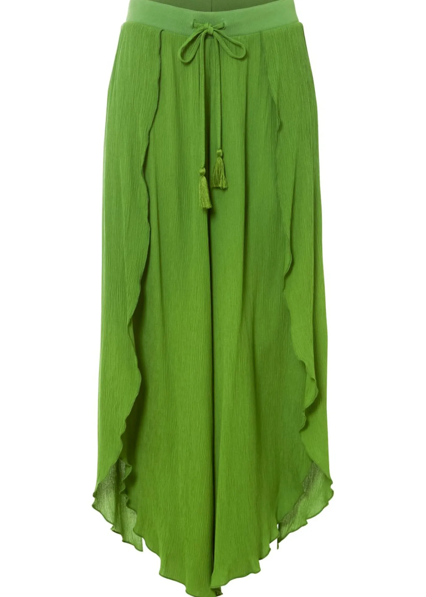 Pantalón veraniego informal con aberturas laterales superpuestas y cinturilla elástica.