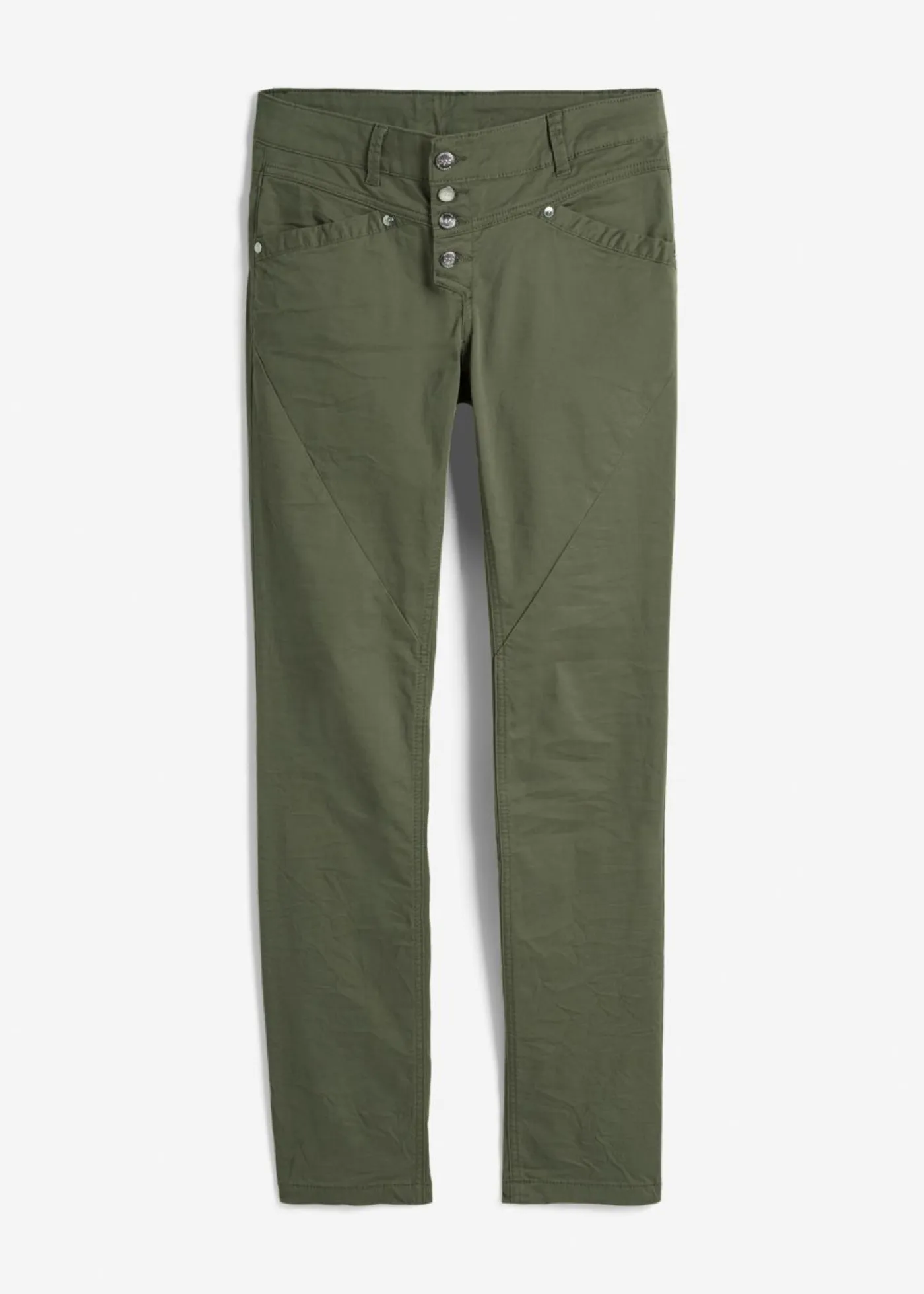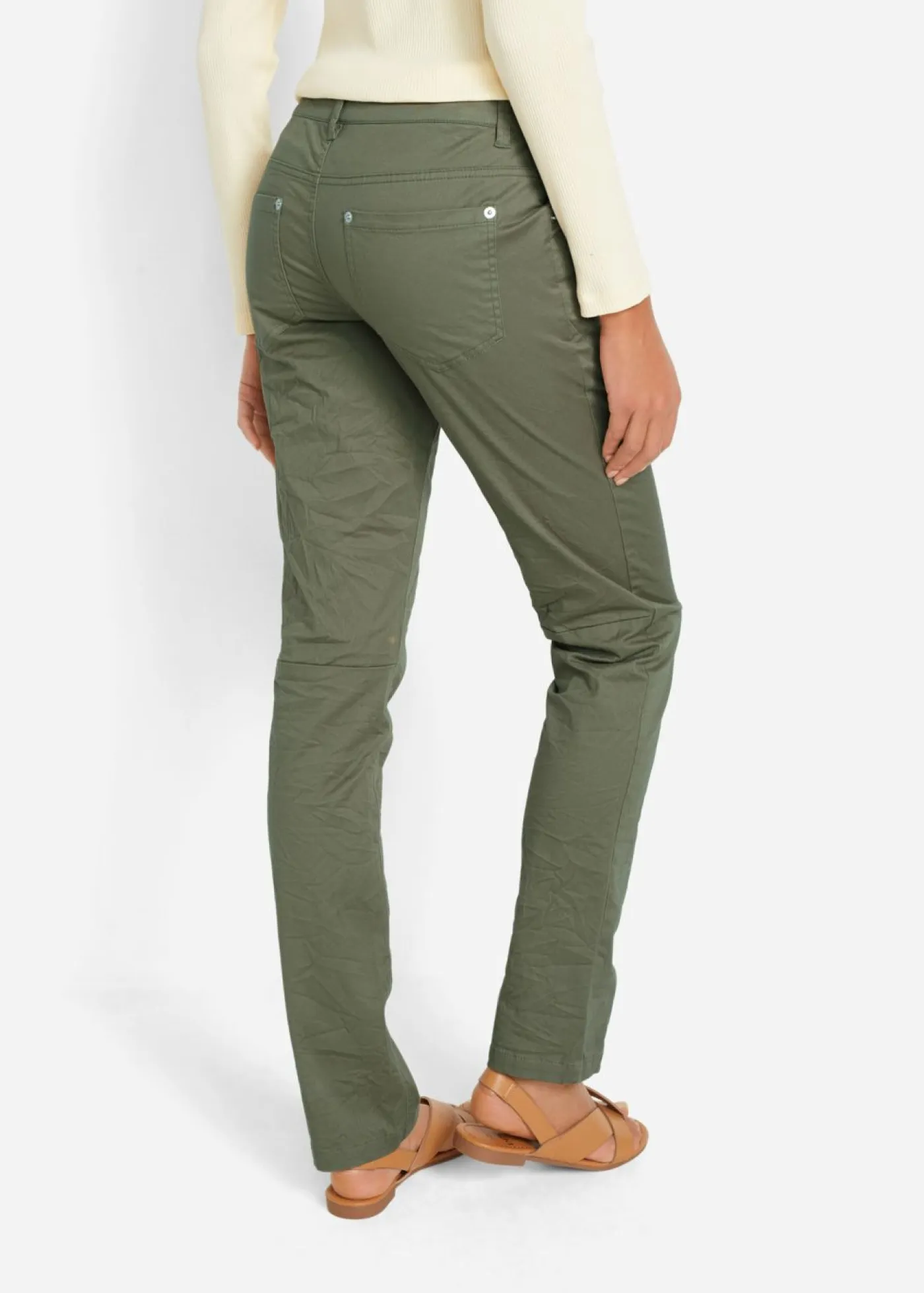 Moderno pantalón con un ligero aspecto arrugado, de mezcla de algodón. Largo interior de la pierna de aprox. 80,5 cm en talla 42. Se puede lavar a máquina.