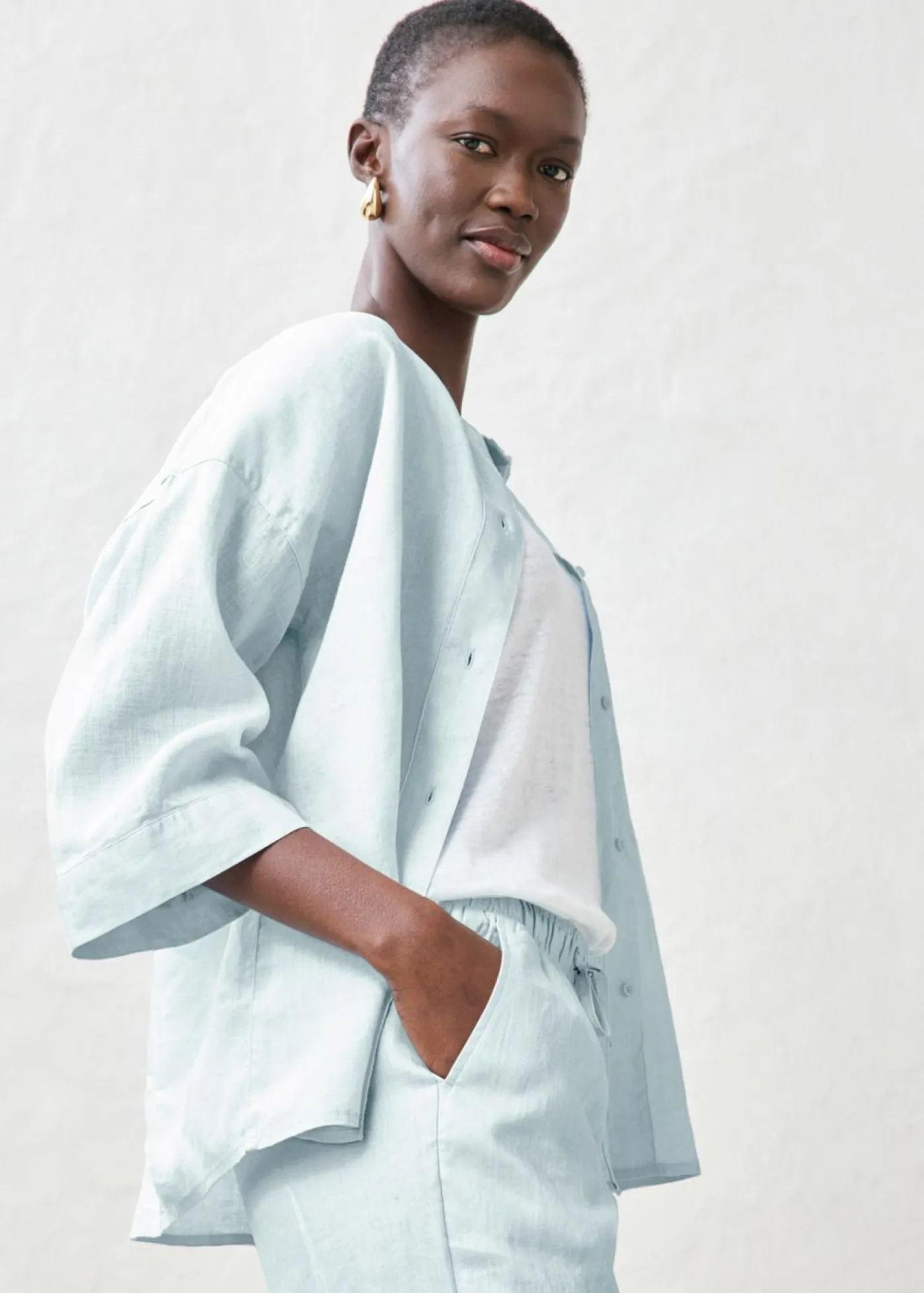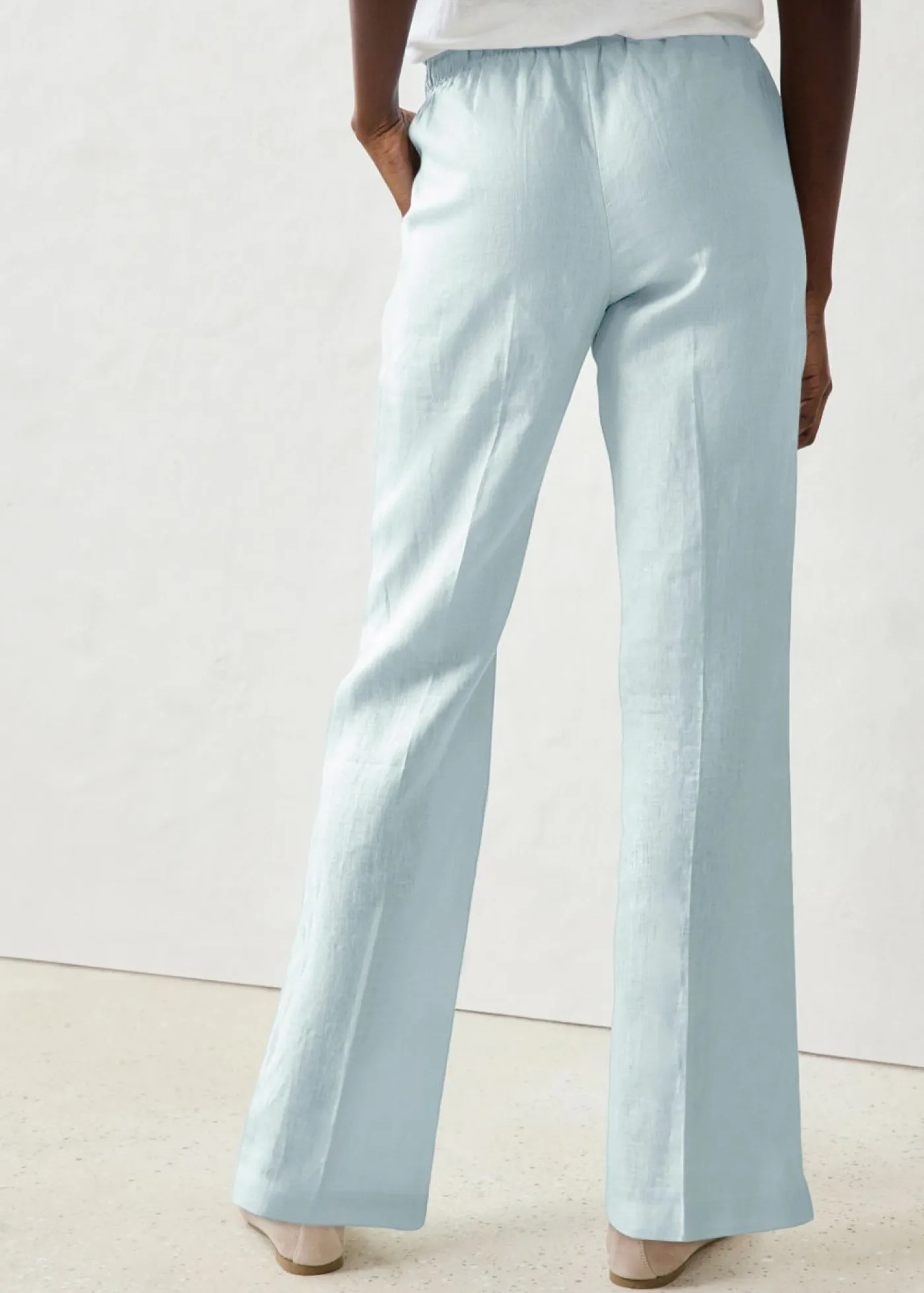 Pantalón ancho de lino puro de alta calidad. El lino es una fibra natural resistente y, gracias a sus propiedades fibrosas, transpira la piel. Se caracteriza por los finos pliegues y la superficie estructurada. Agradable y vaporoso, el lino será tu compañero ideal para el verano.