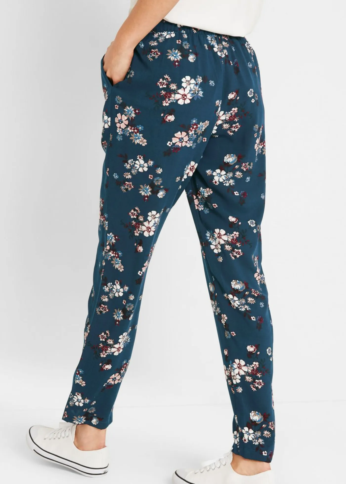 Pantalón ligero, sin cierre, de viscosa con estampado de palmeras. Cintura elástica. Largo interior de la pierna de aprox. 80,5 cm (talla 42). Se puede lavar a máquina.