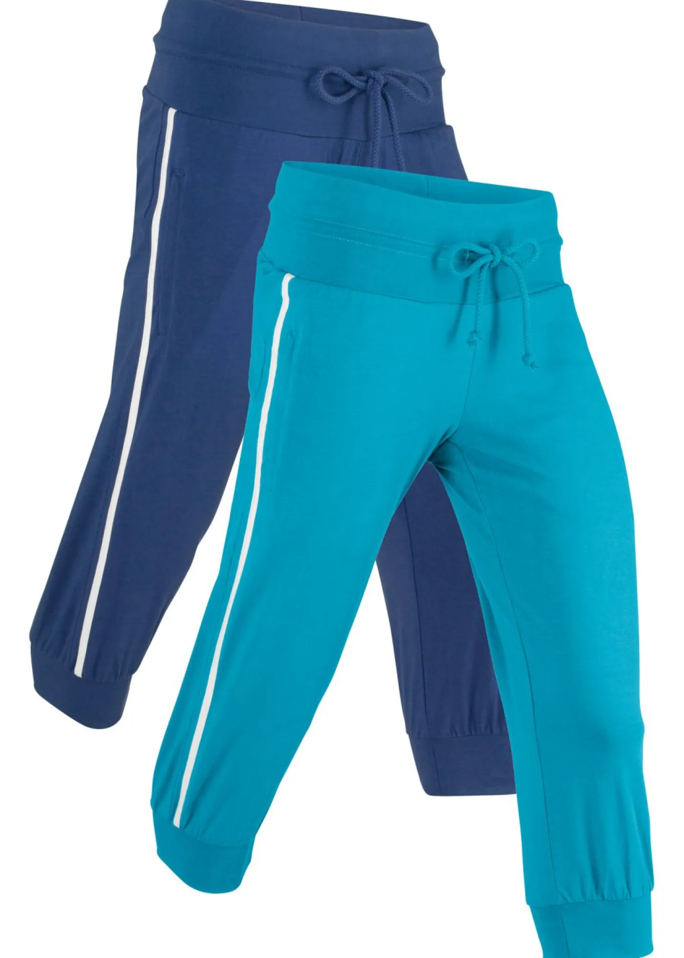 Paquete doble de pantalones capri deportivos, de material elásticos y con cremallera. Ideal para deportes suaves y sesiones de entrenamiento ligero. Con cinturilla elástica, bolsillos laterales. Largo interior de la pierna de aprox. 49 cm en talla 40/42. Se puede lavar a máquina.