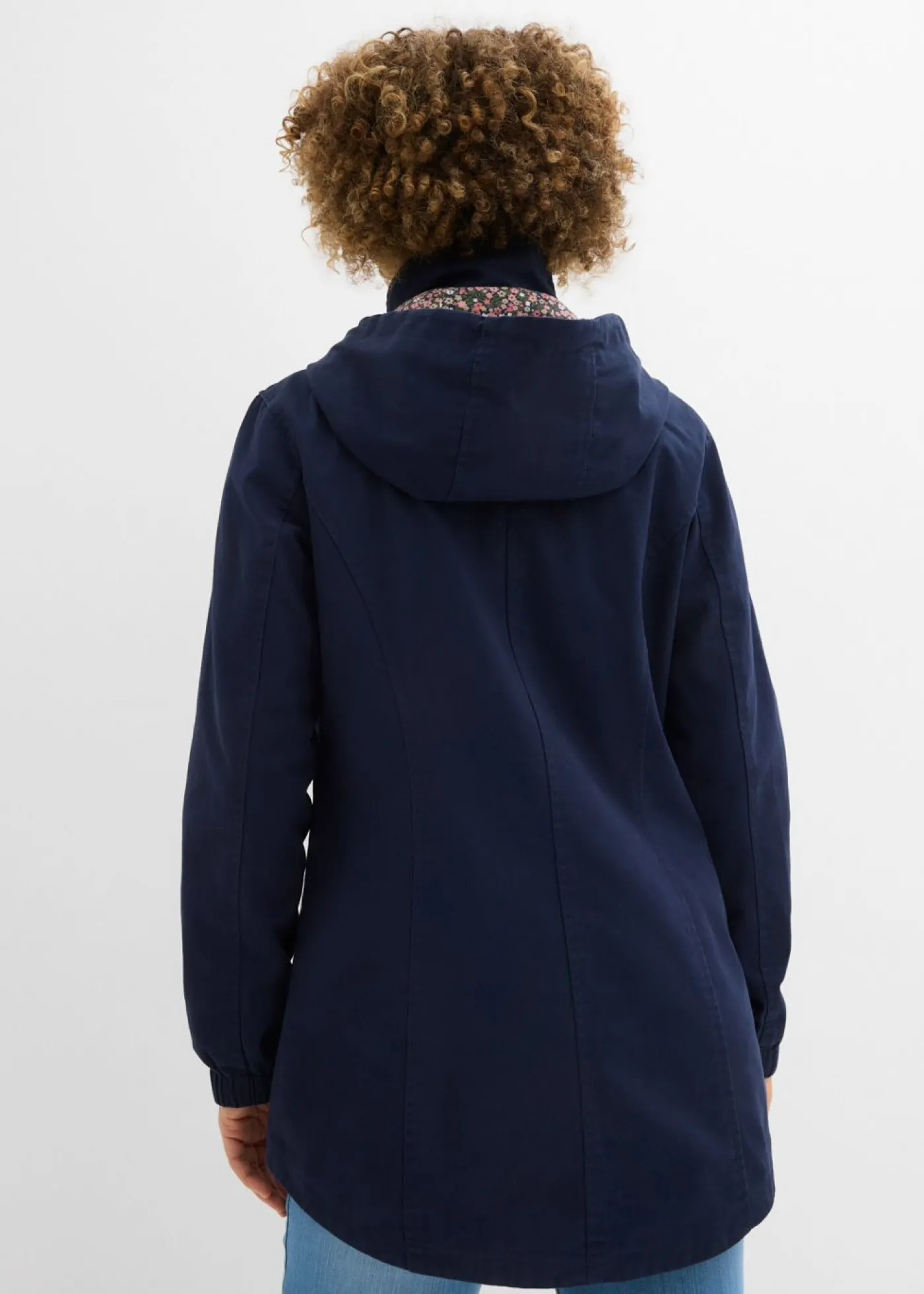 Parka informal de algodón con bolsillos laterales. Largo de aprox. 82 cm en todas las tallas. Se puede lavar a máquina.