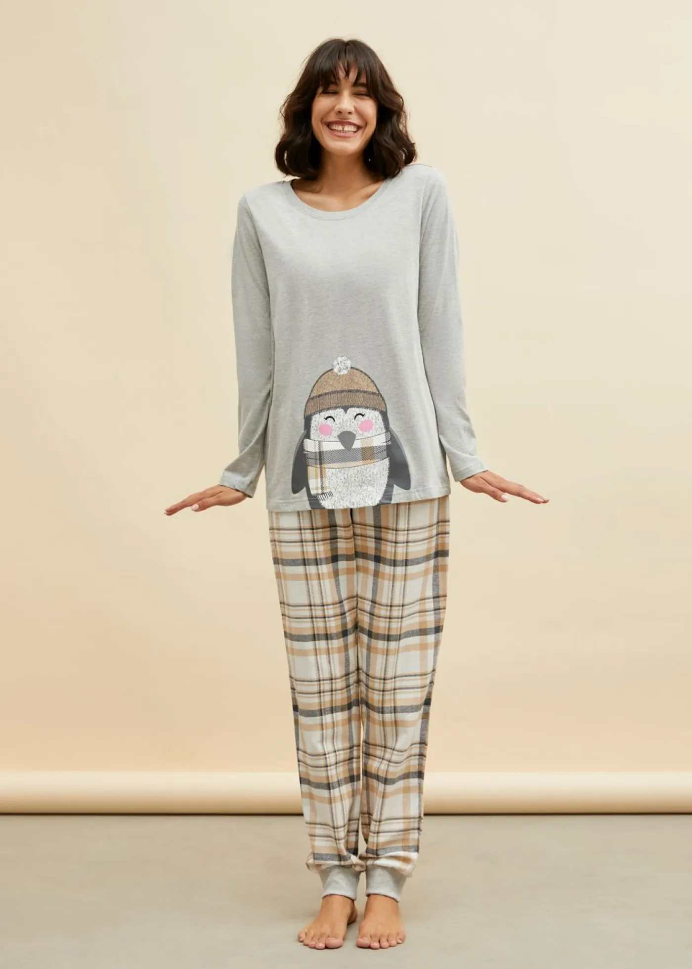 Pijama de pingüinos con pantalón de franela suave.