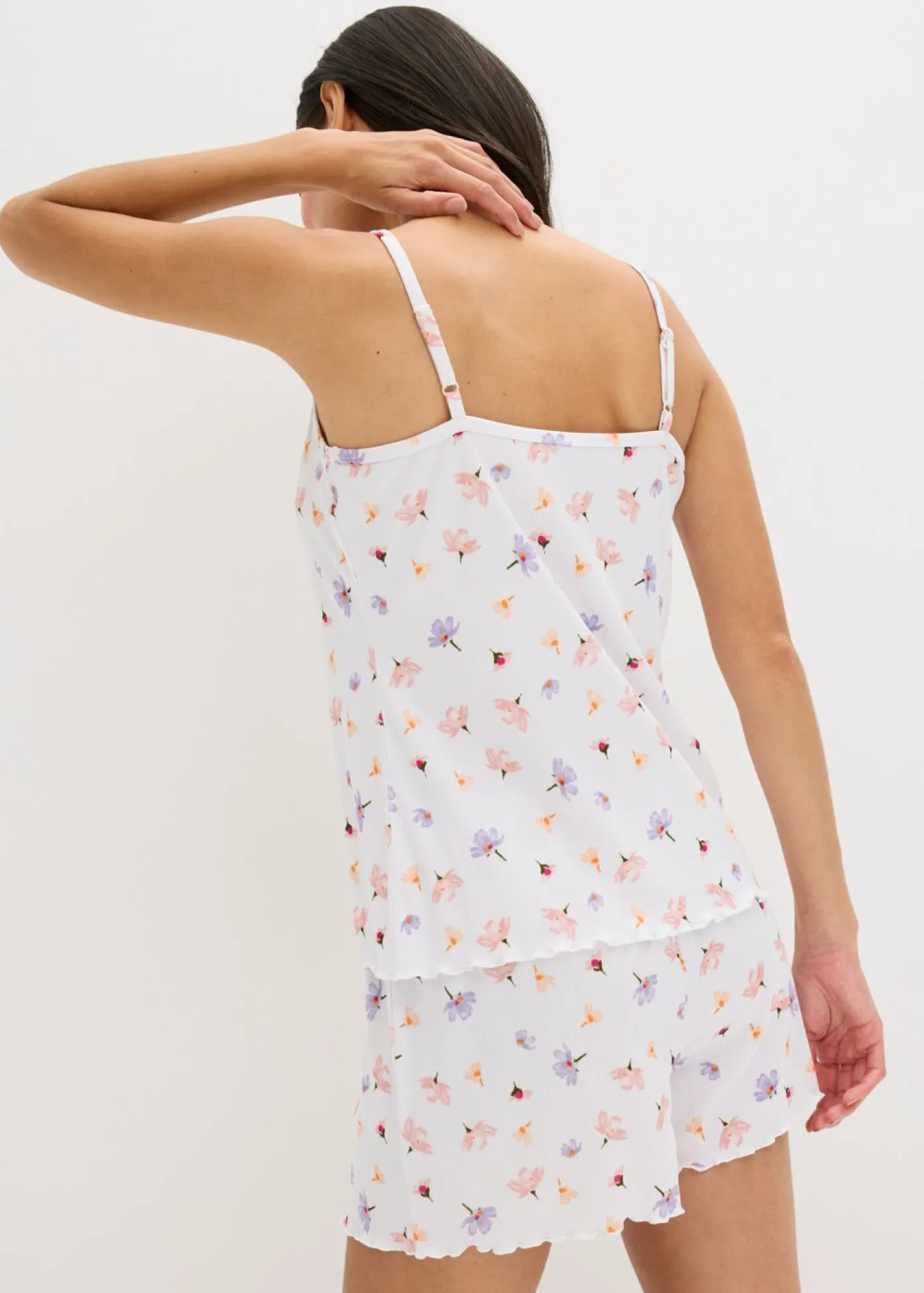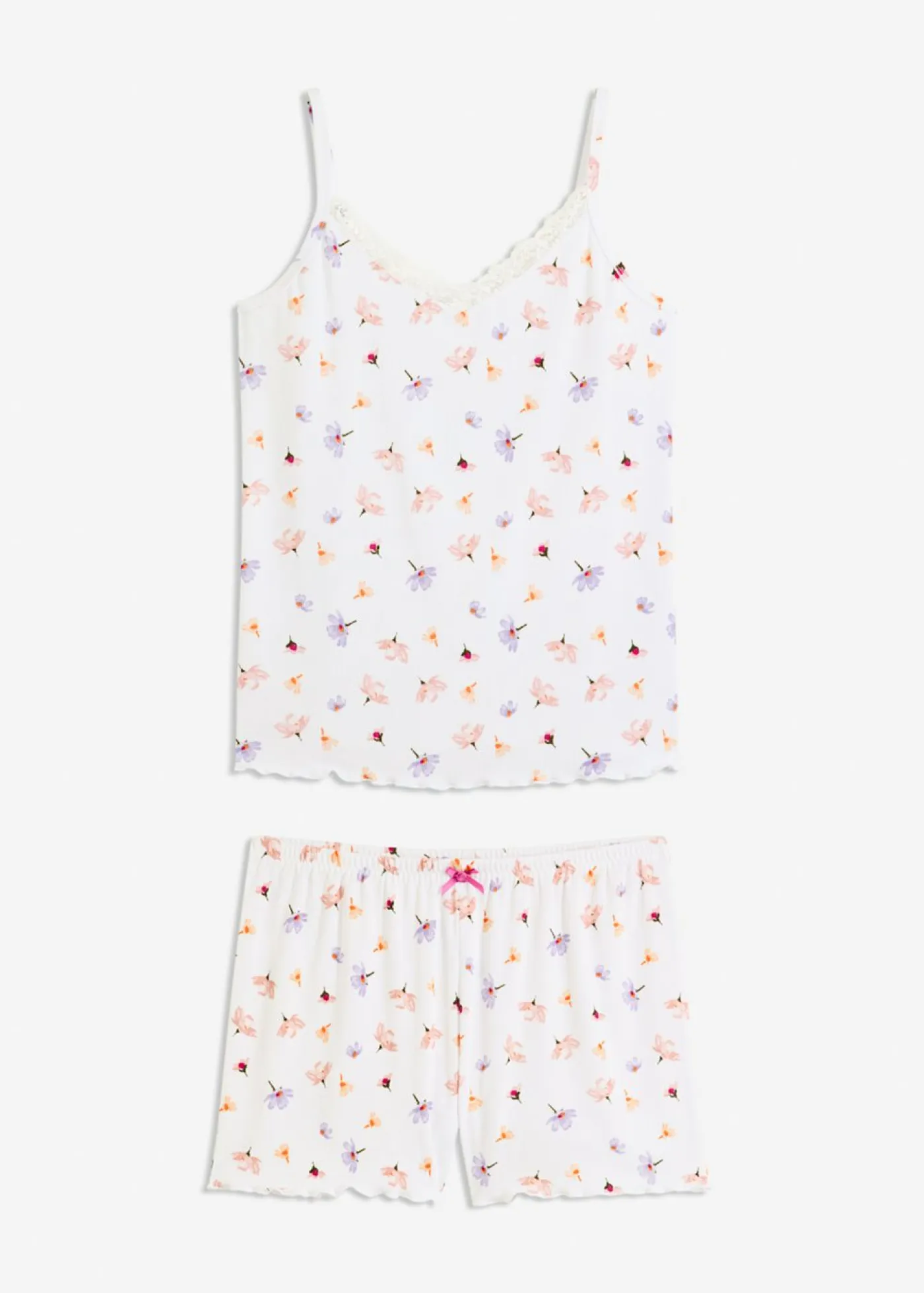 Agradable pijama corto de canalé con un bonito encaje.