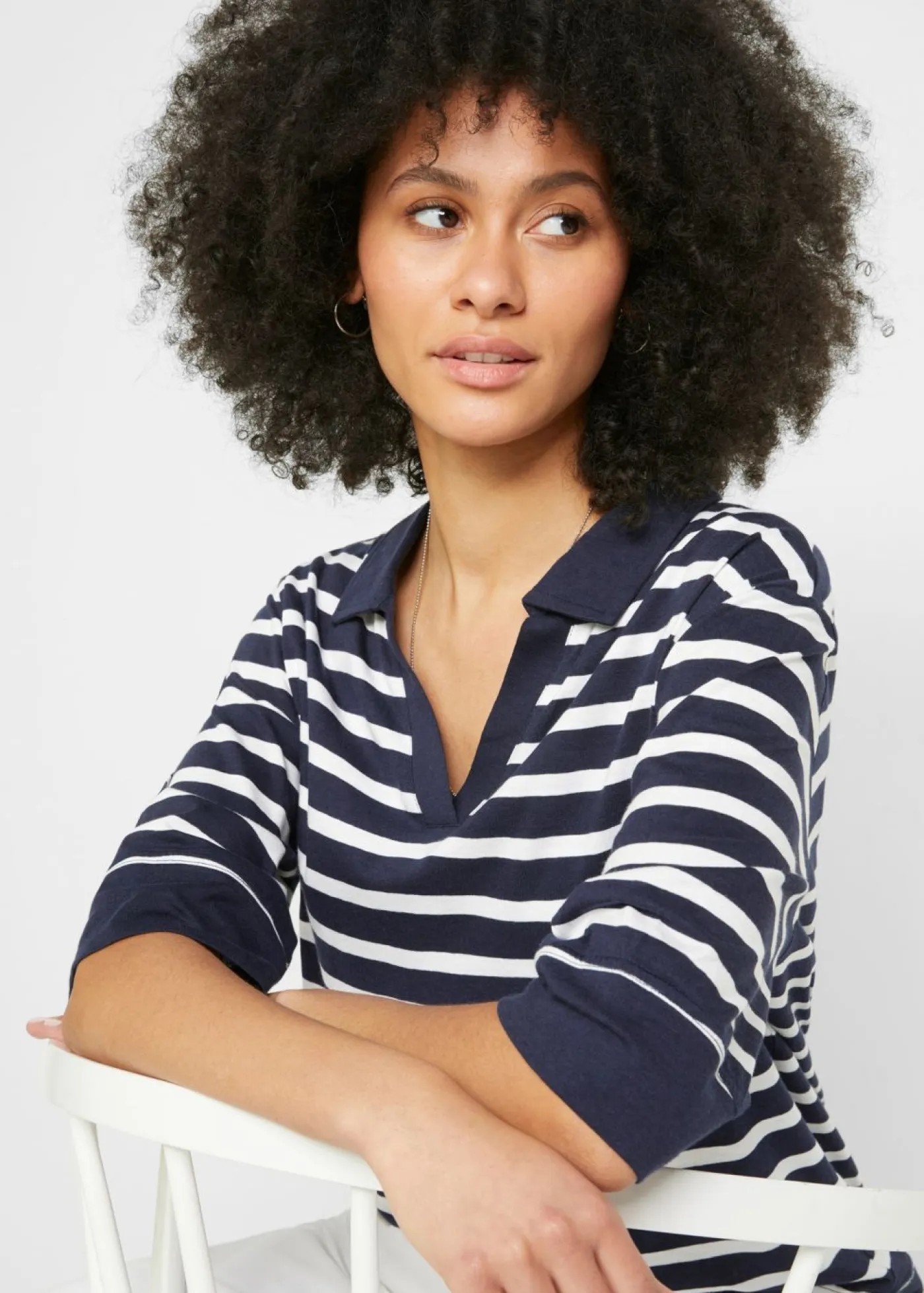 Polo holgado con cuello y mangas anchas. Largo total de aprox. 66 cm en talla 40/42. Se puede lavar a máquina.