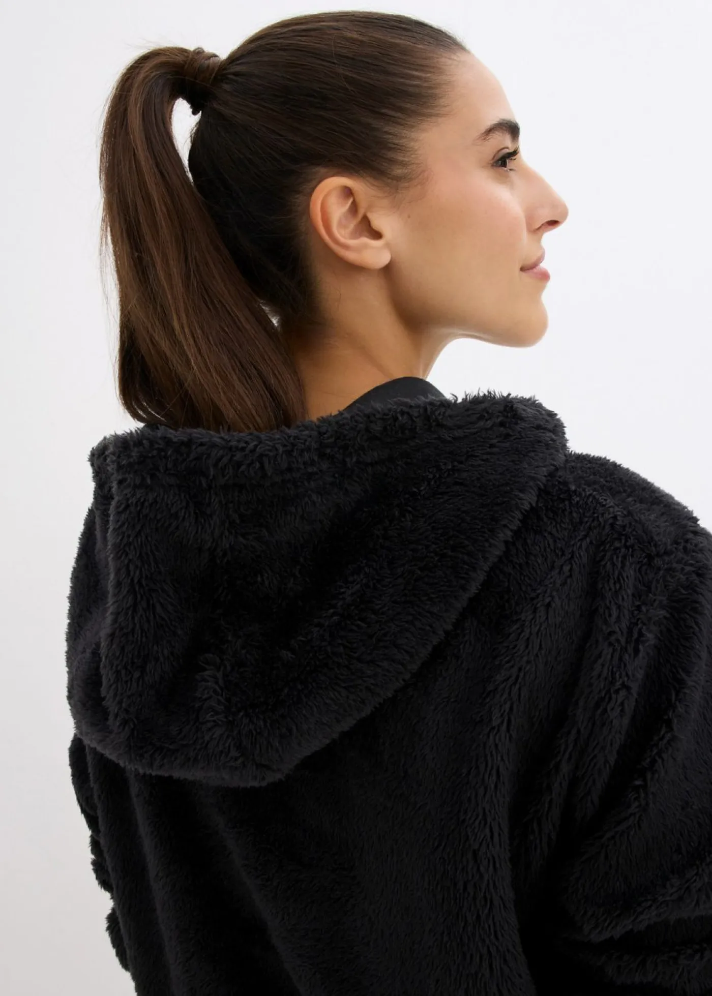 Sudadera larga polar más larga detrás que delante.