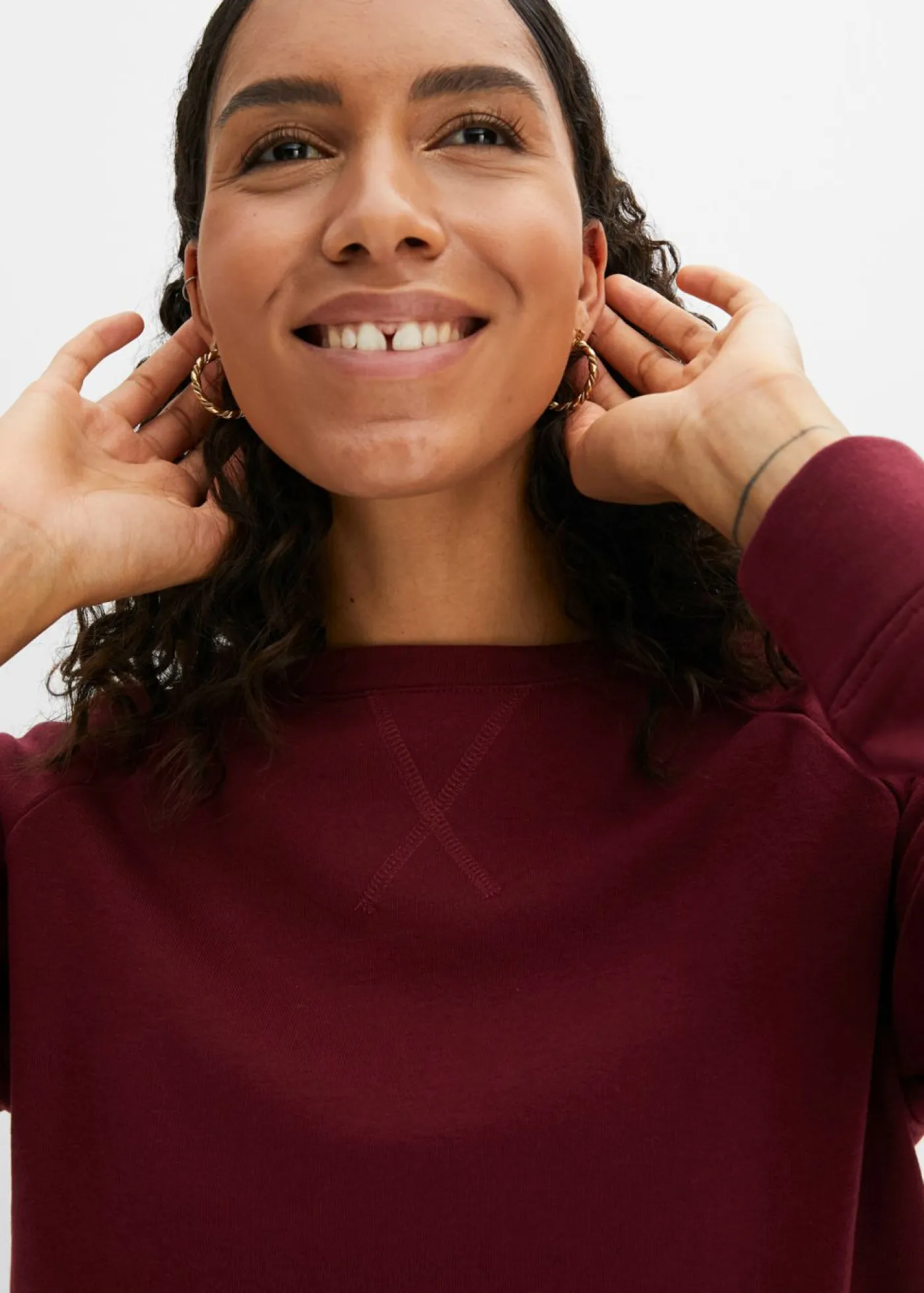 Sudadera básica con cuello redondo. Largo total de aprox. 66 cm en talla 40/42. Se puede lavar a máquina.