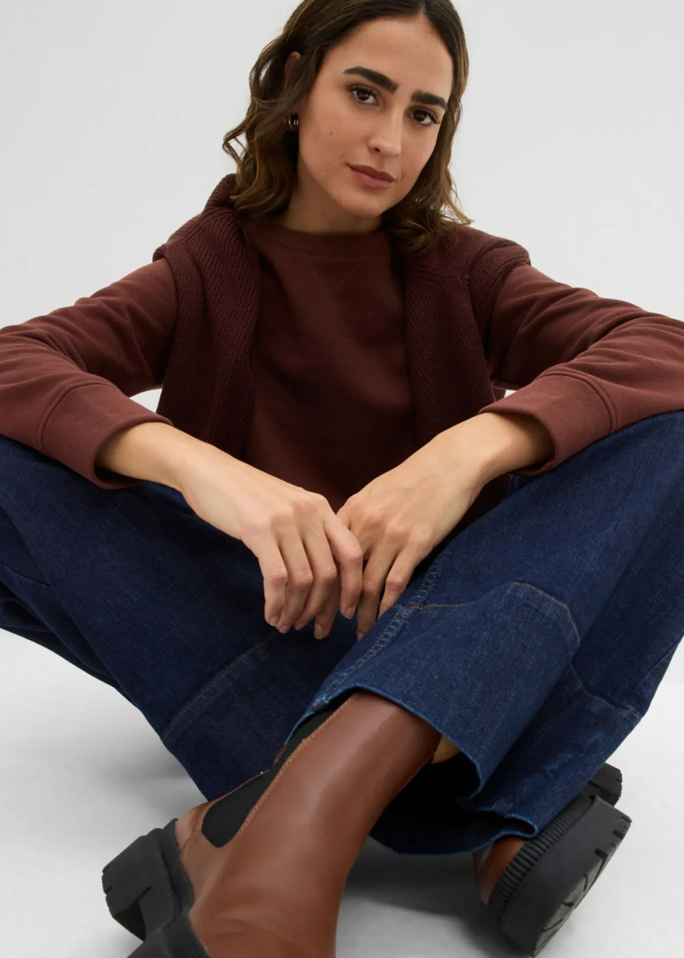 Sudadera básica con cuello redondo. Largo total de aprox. 66 cm en talla 40/42. Se puede lavar a máquina.