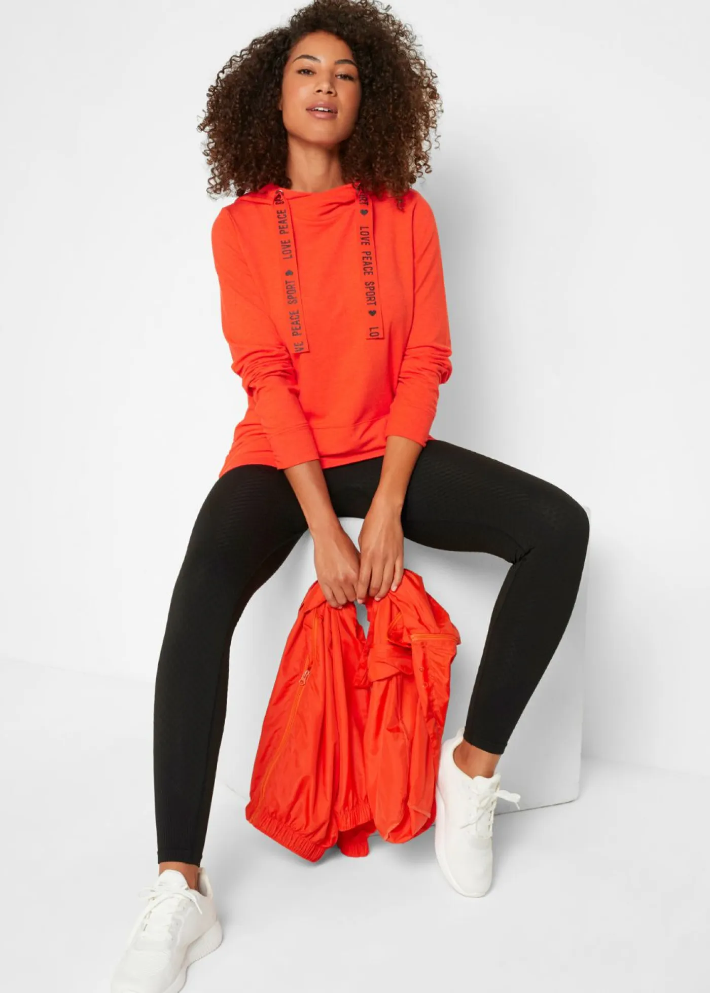 Sudadera deportiva de material suave con capucha y bolsillos tipo canguro. Sudadera con capucha y bolsillos tipo canguro. Largo de aprox. 70 cm en talla 40/42. Se puede lavar a máquina.