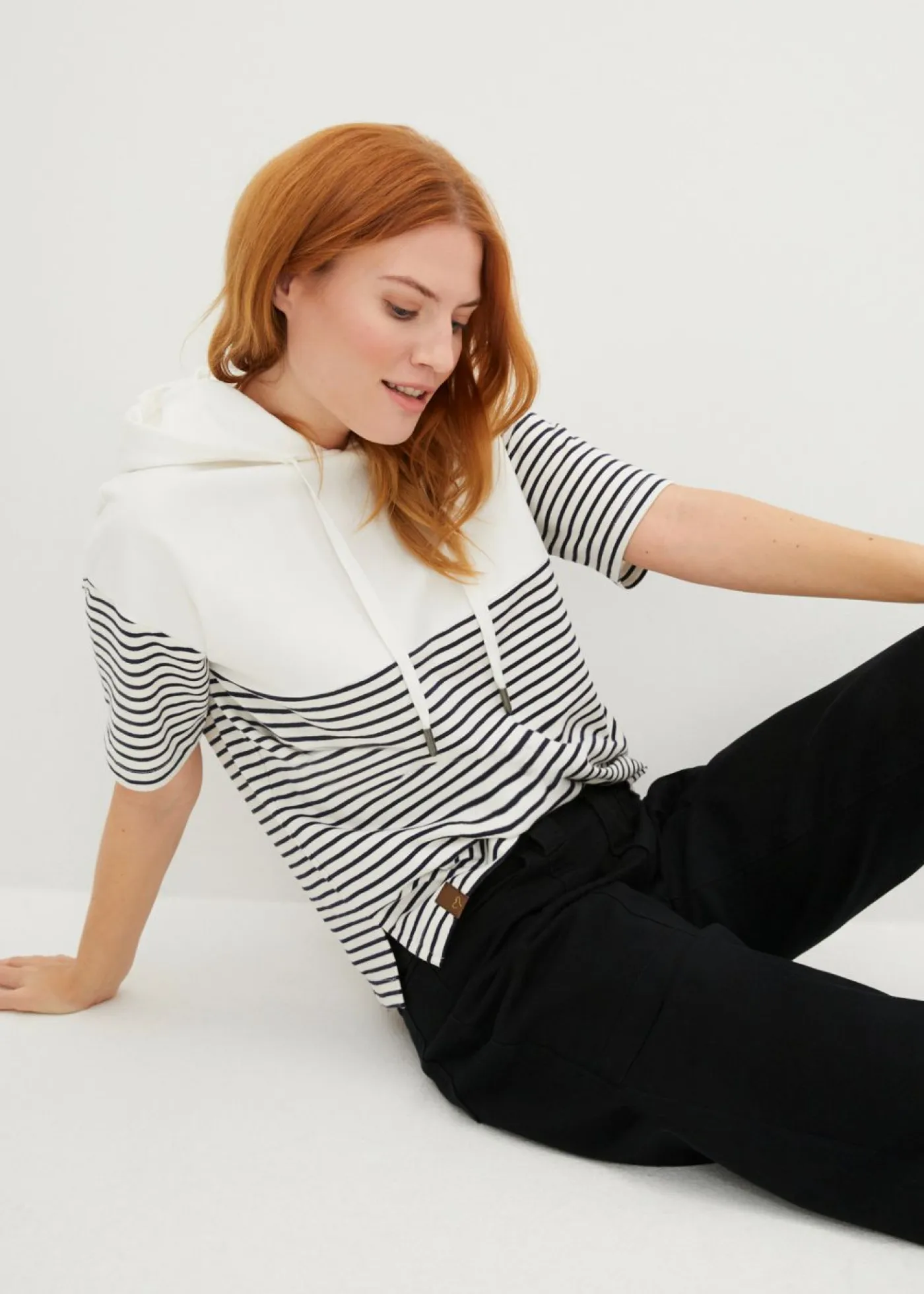 Sudadera de corte holgado con capucha y manga corta.
