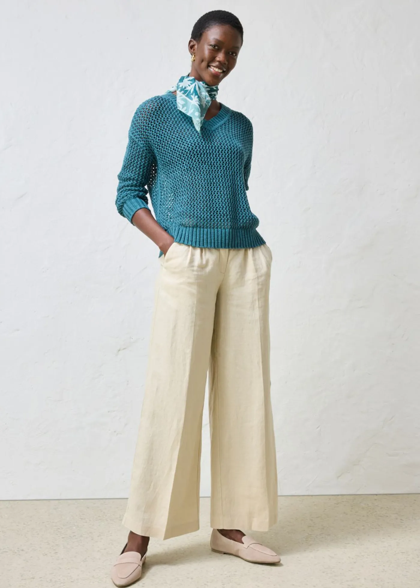 Jersey con un bonito ajour y una ligera mezcla de lino.