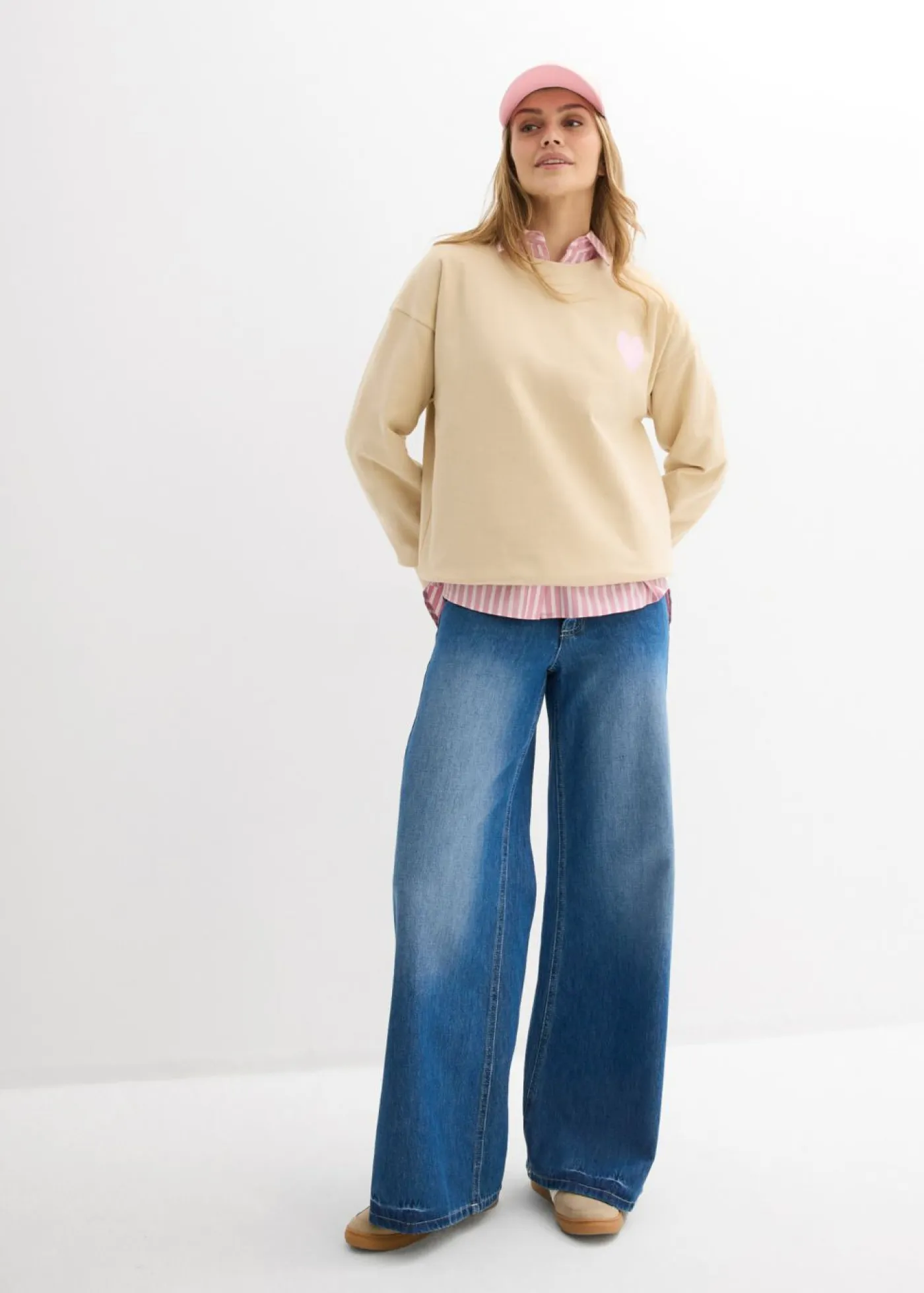 Sudadera de corte casual con hombros caídos. Largo de aprox. 70 cm en talla 40/42. Se puede lavar a máquina.