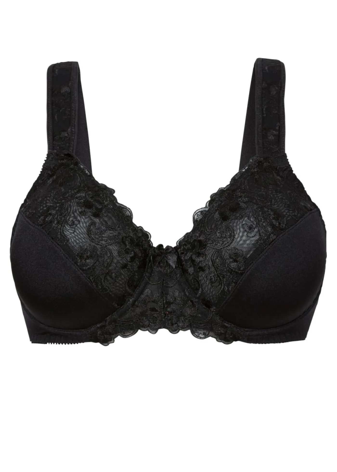 Sujetador reductor con bordado elegante. Con aros. Copas bordadas y tirantes acolchados para mayor comodidad. Su diseño especial reduce visualmente el tamaño del pecho.