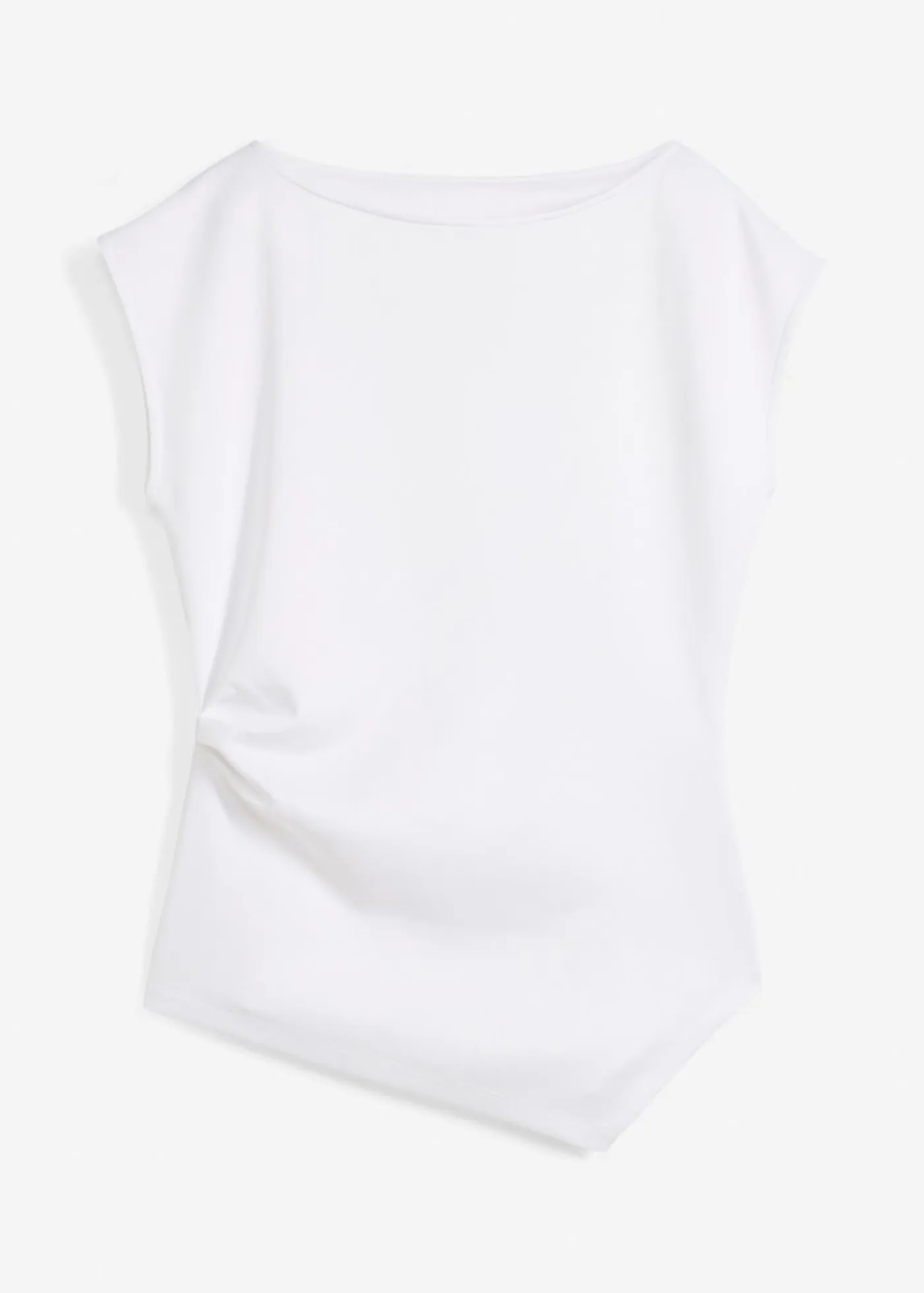 Top sin mangas con detalle drapeado en el lateral y dobladillo asimétrico.